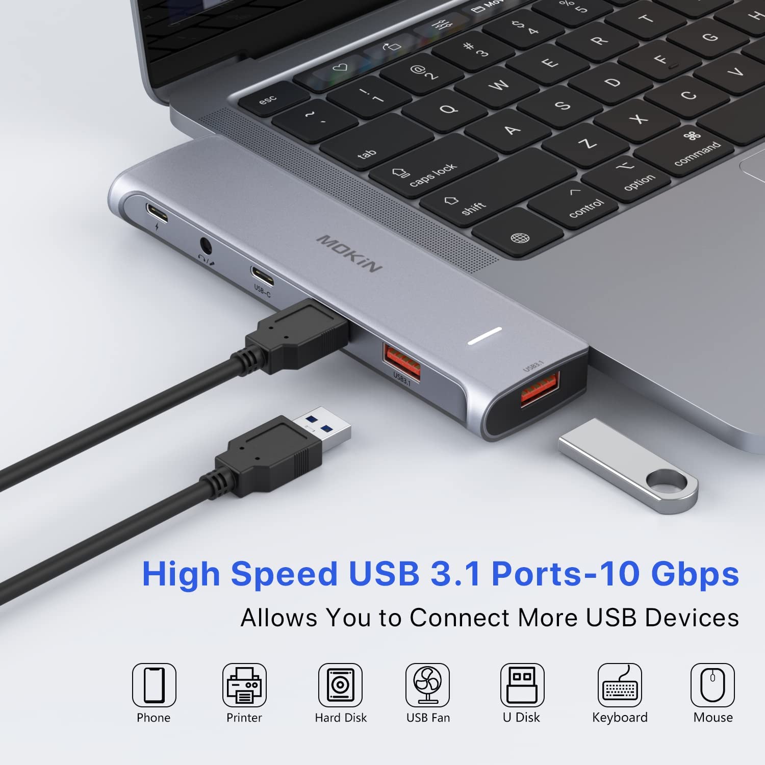 USB C Adapter for MacBook Pro/Air M1 M2 2021 2020 2019 2018,MOKiN USB C Hub MacBook Pro Accessories, Mac Adapter with 3 USB 3.0 Ports,USB C to SD/TF Card Reader and 100W Thunderbolt 3 PD Port
