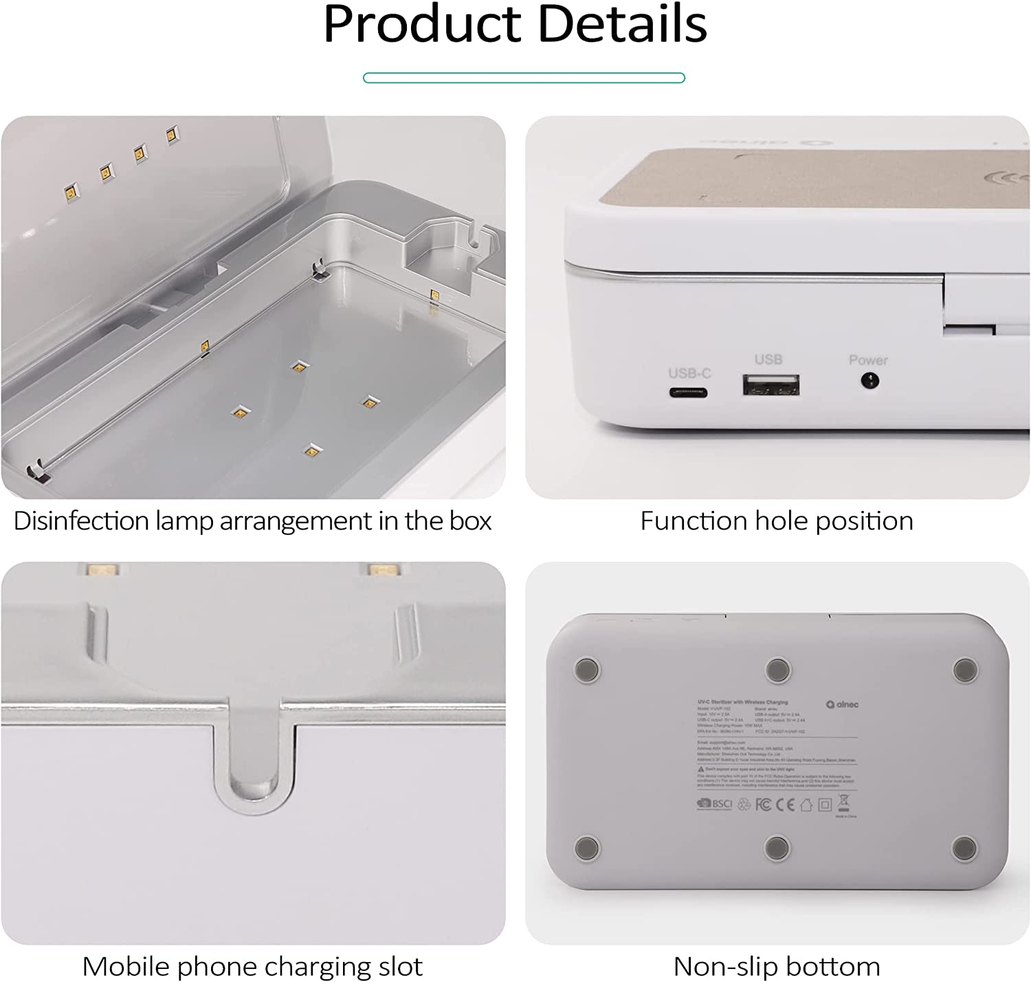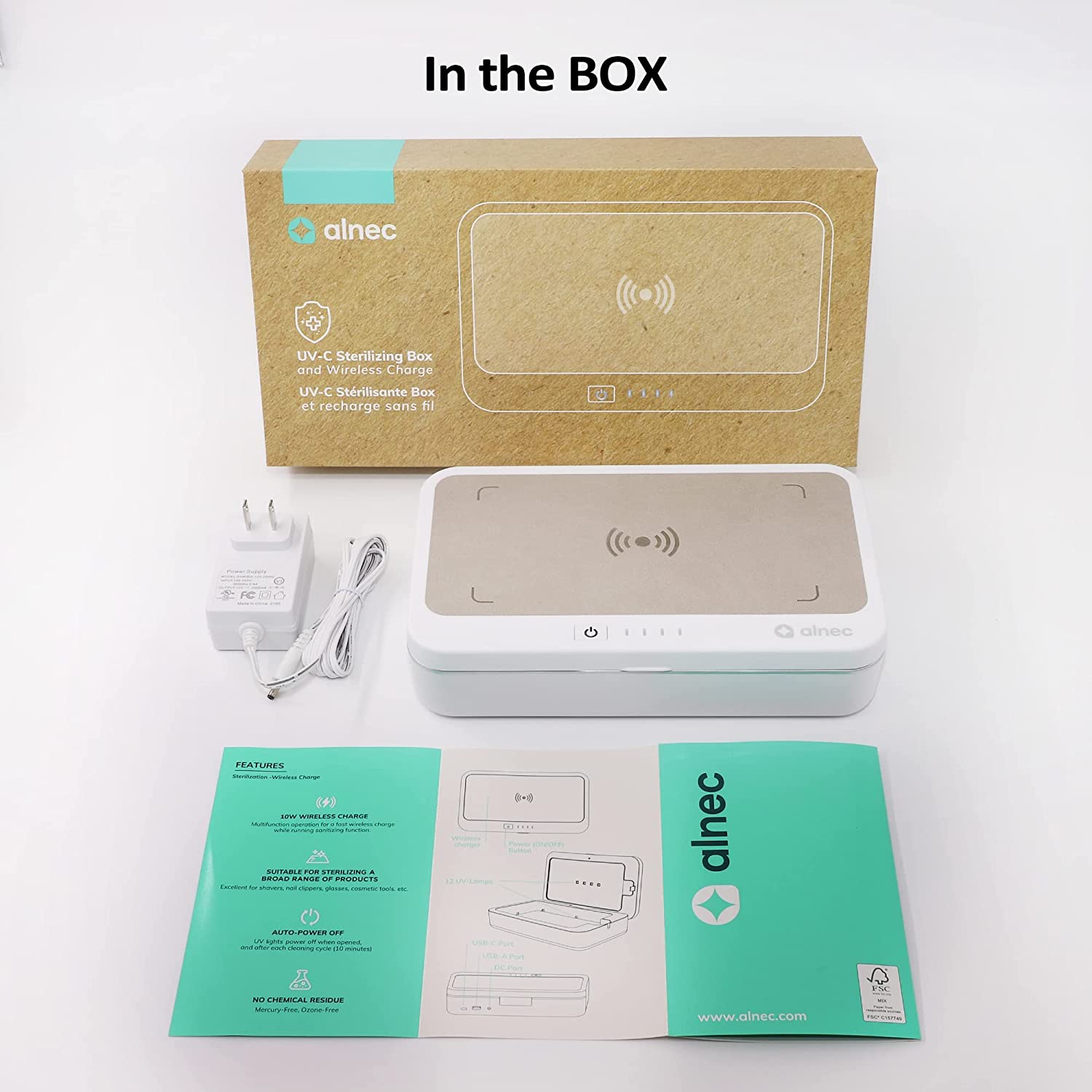 • What You Get: 1 x UVC Sterilizing Box & Wireless Charger, 1 x Charging Cable, 1 x welcome guide, worry-free 12-month warranty, and friendly customer service. EPA Est No.: 98266-CHN-1