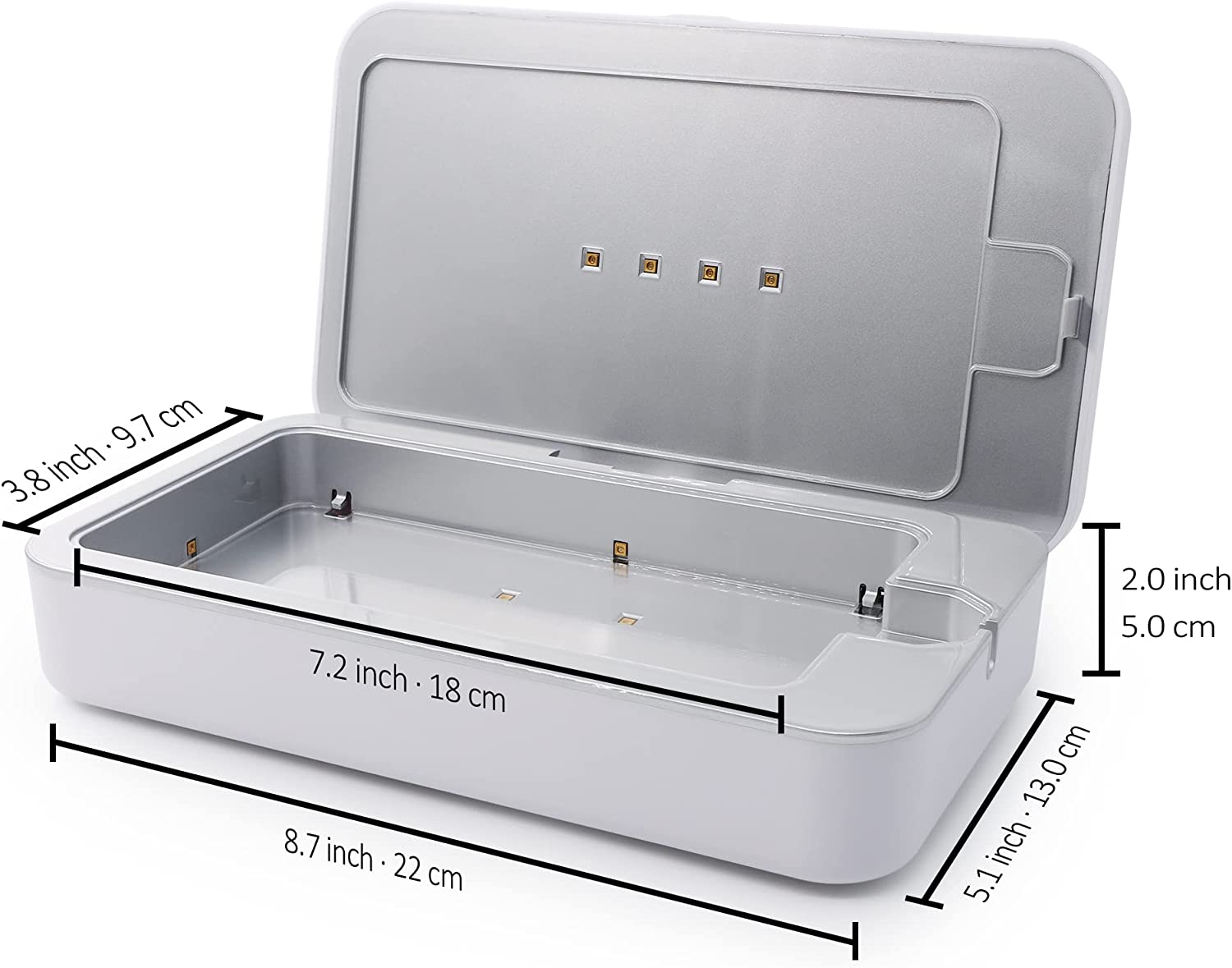 • SAFE AND EASY: Built-in safety switch shuts off the UV LED light once the sterilizing box is opened. Charge your iPhone/android cell phone with 10W fast wireless charging or through both USB-A and USB-C charging ports as you disinfect