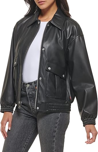 Levi's Women's Faux Leather Lightweight Dad Bomber Jacket