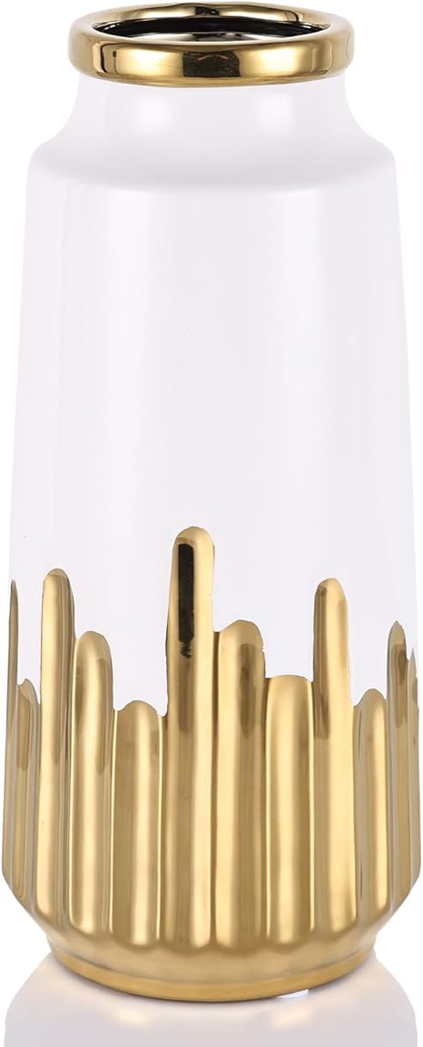 9.8" Tall White and Gold Vase, Modern White and Gold Ceramic Cylindrical Flower Vase for Room Decor, Living Room, Bedroom, Kitchen, Dining Table, Elegant Home Decor Vase (Medium)