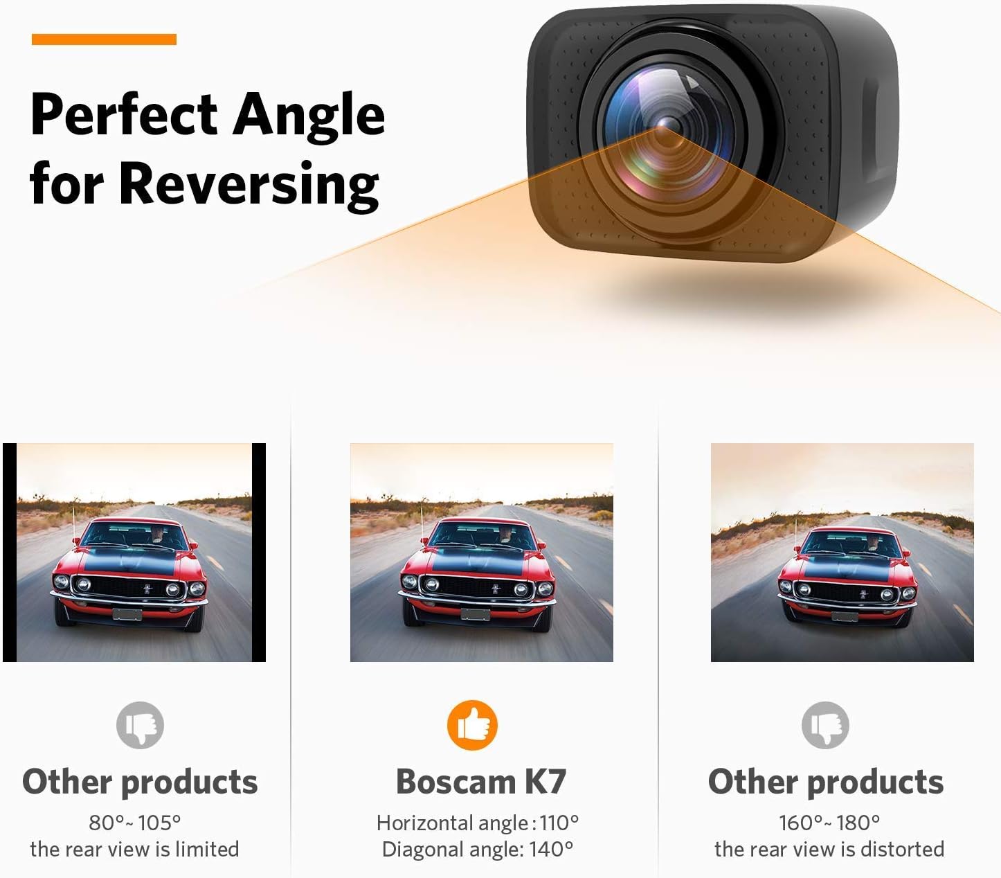 • 【Being Simple: 5 Inch Sweet Monitor】Without any logos or extra buttons, the display size is perfect-not too intrusive but big enough. With K7 vehicle backup cameras, you can see what's happening behind your vehicle in a breeze - backing up, hitching, towing a trailer or camper, etc. - everything is in your eyes.