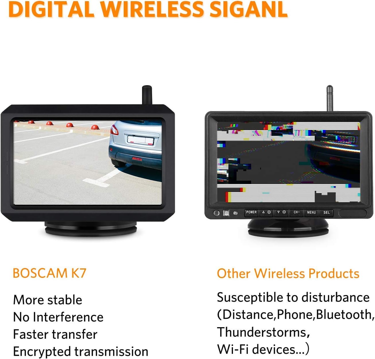 5 Inch Wireless Backup Camera Kit with Digital Signal, Waterproof Rear View Camera with 5″ TFT-LCD Monitor, Ideal for Sedans, Pickup Truck, SUV, Minivans (BOSCAM K7)