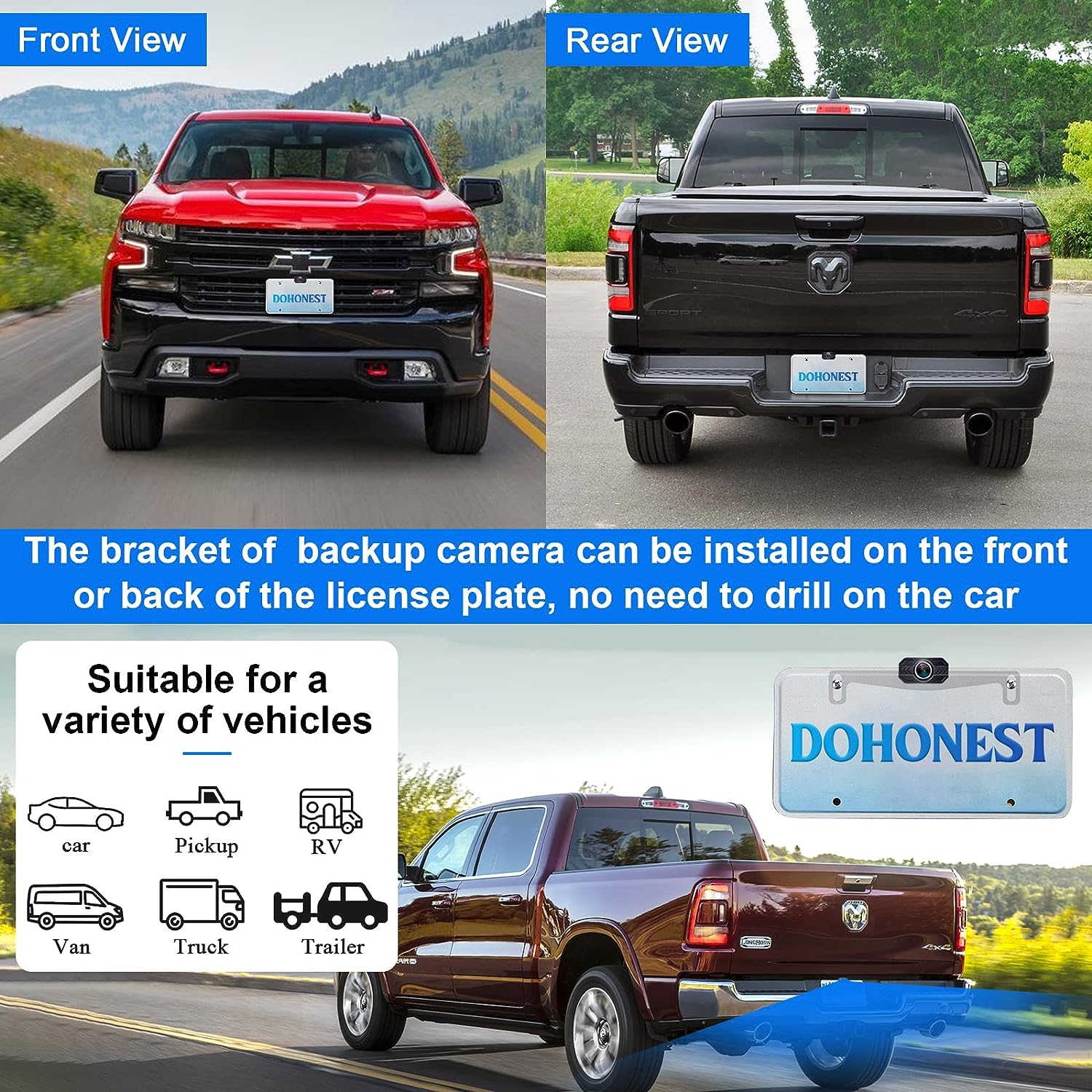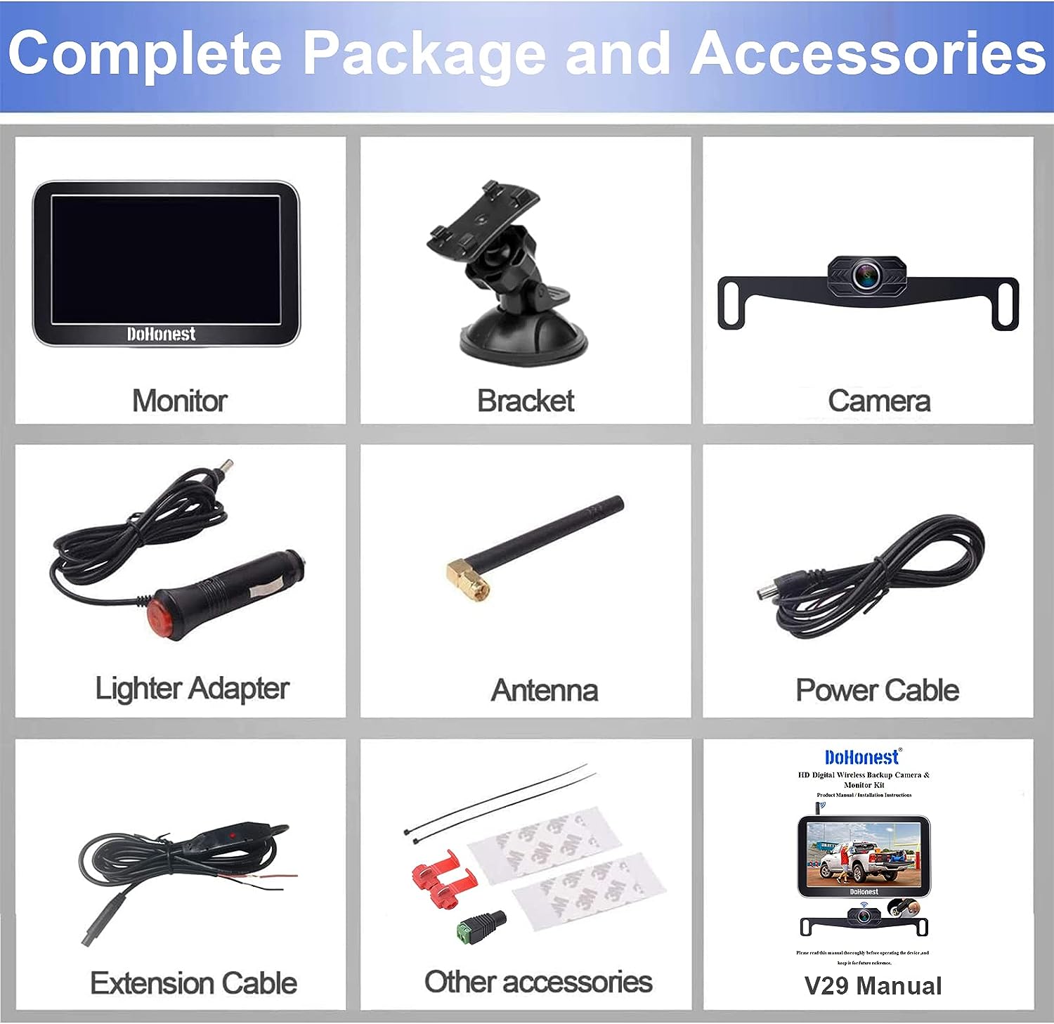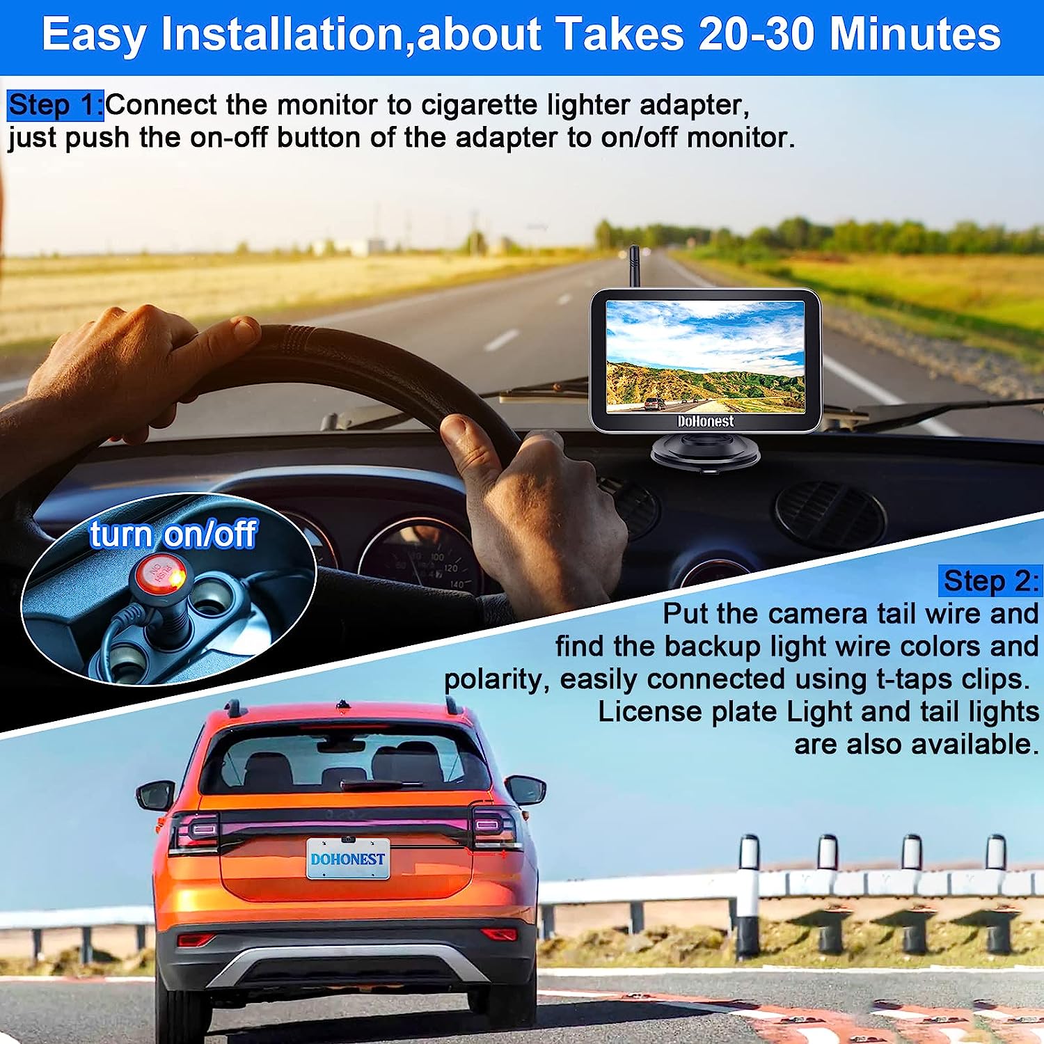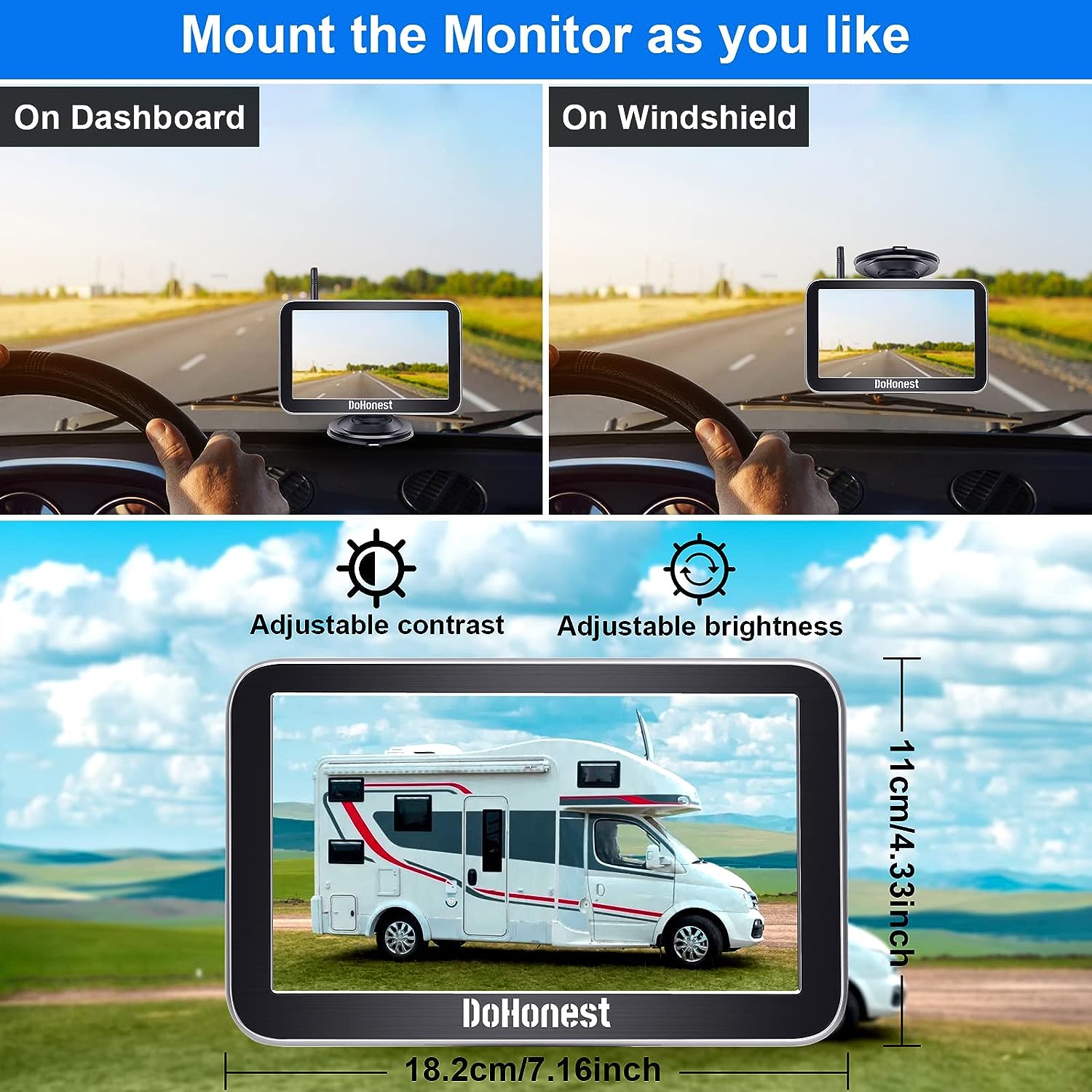 • ★Good Service - The rv backup camera wireless system is suitable with cars,vans,camping cars, trucks, small RVs. DoHonest offers clear user guide (installation video included), 45-day money back guarantee and 3 year warranty. 24 hours after-sales service and Professional technician team is available. If there's any issue, just contact us.