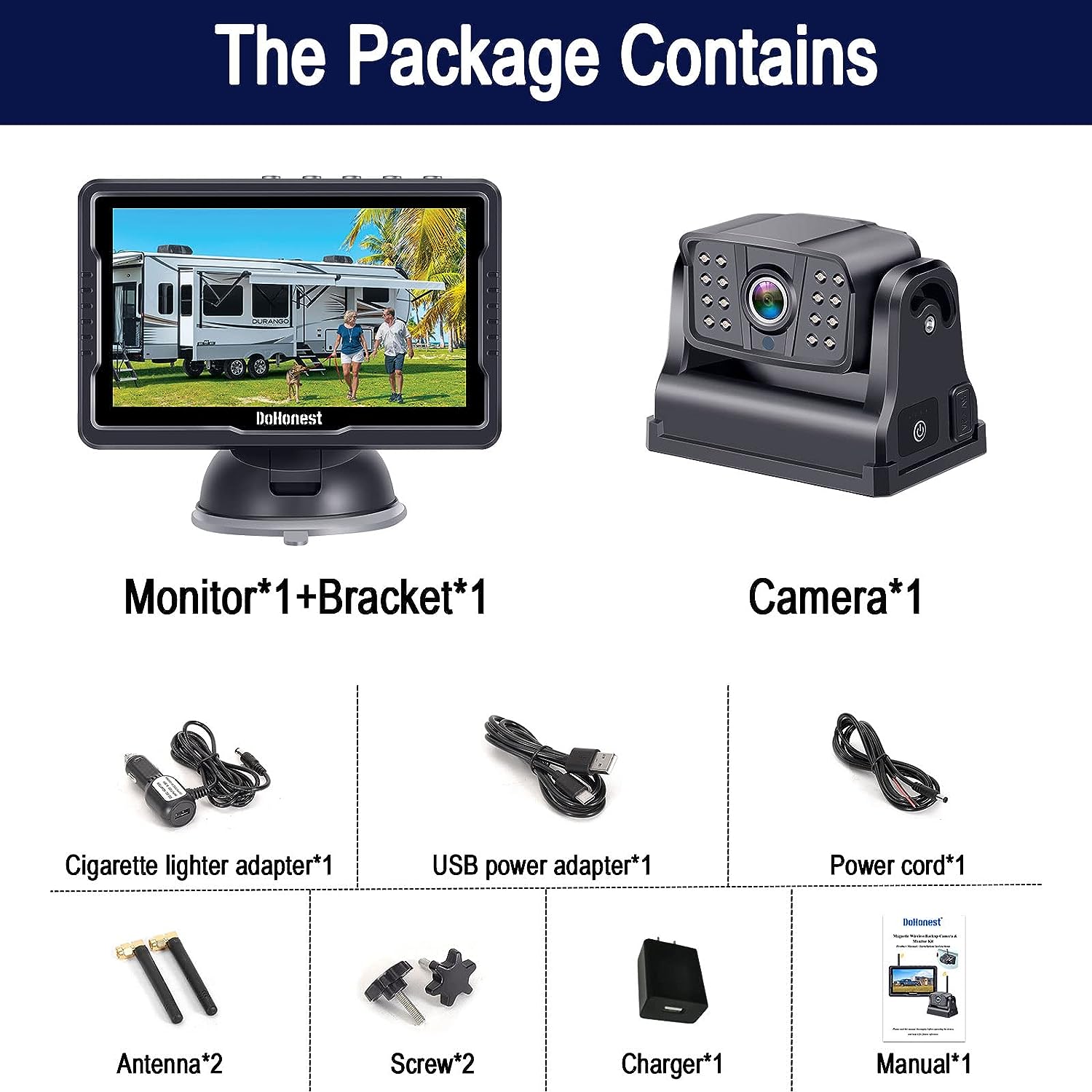 • 5 Inch Display Multiple Placement: Equipped with a powerful suction cup mount,cordless backup camera can provide great stability for this screen,not vibrate or shake. You can place V35 wireless backup camera for rv on the windshield,or dashboard.