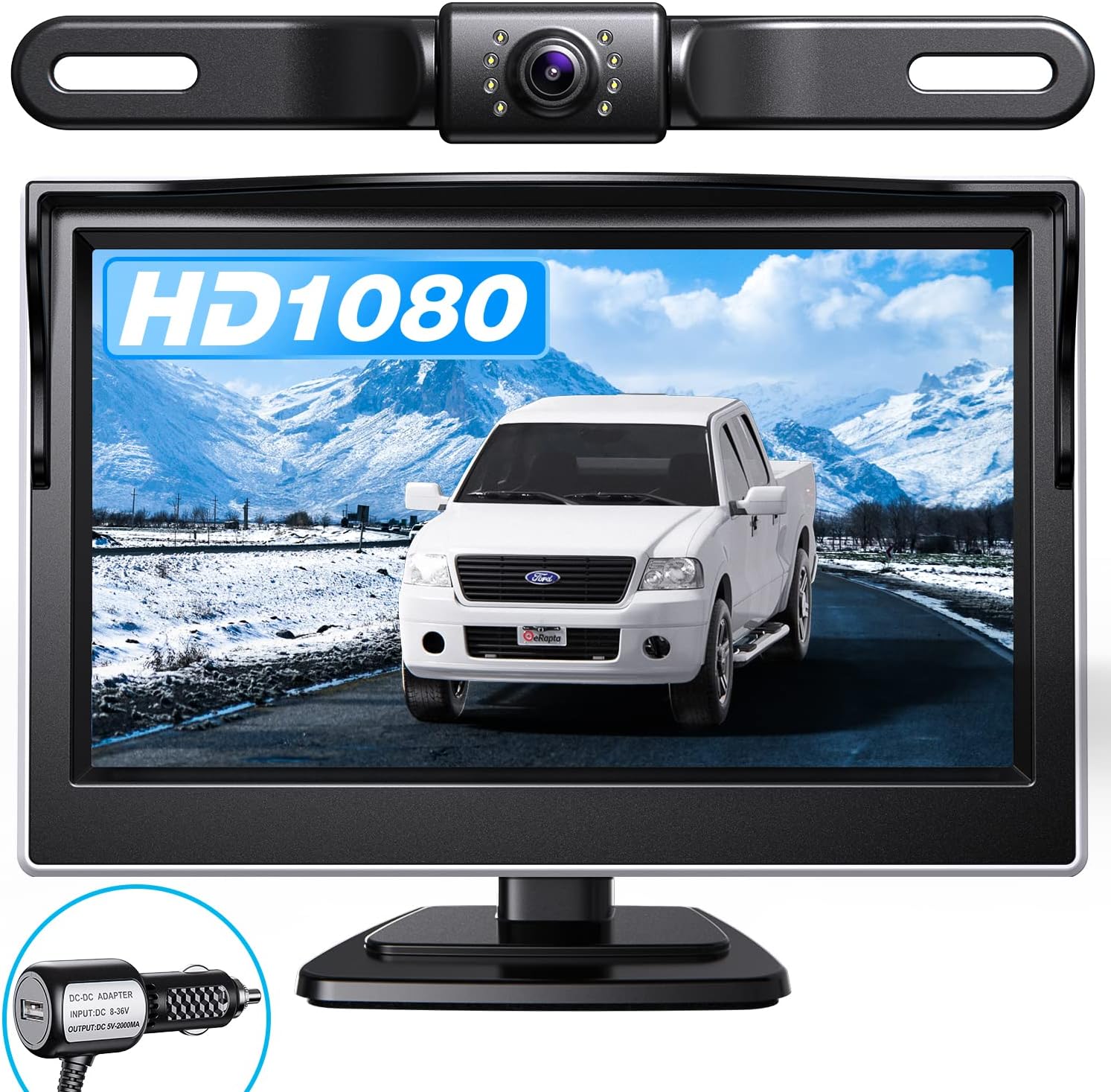eRapta Backup Camera, 4.3”HD 1080P Rear View Monitor kit with IP69 Waterproof, Night Vision, DIY Grid Lines for Car Truck Minivan A43