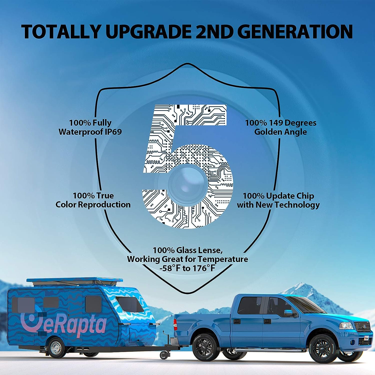 • IP69K Waterproof: The reversing camera is made of high purity resin and meets IP69K waterproof standard, with professional waterproof shockproof high and low temperature resistant performance, adapting to various complex working scenarios.