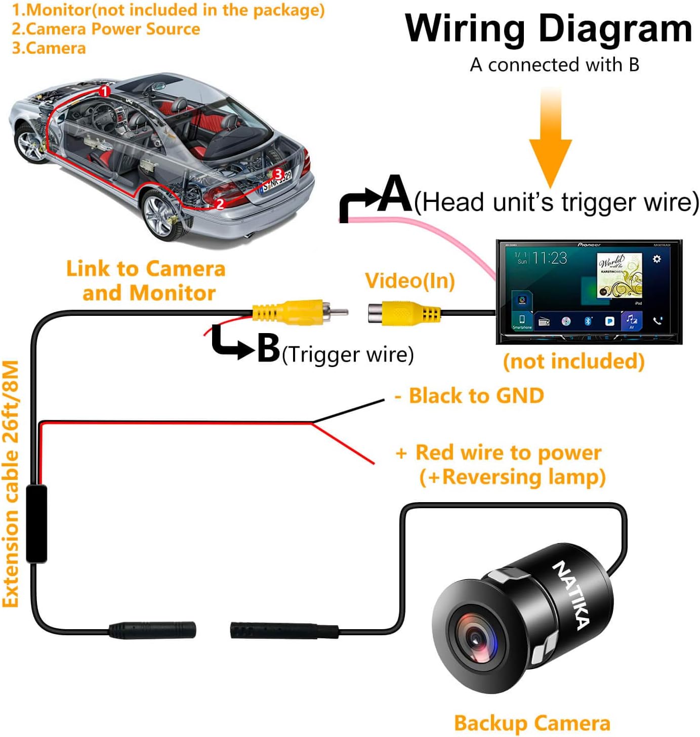 • Rear view camera surface mount support IP69K waterproof IP rate. It designed with fully sealed glue filling craft, so the waterproof effect is better than IP67 and IP68, you absolutely no need to worry about water, fog or mist inside. NOTE: please separately order a suitable harness to complete installation if connect it to a FACTORY RADIO.