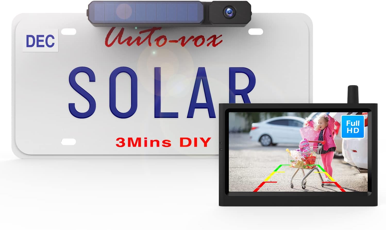 Upgrade Solar Wireless Backup Camera for Truck, AUTO-VOX 3Mins No Wires Install with Battery Powered Car Back Up Camera Systems, IP69K Waterproof Vehicles License Plate Reverse Camera for Trailer/SUV