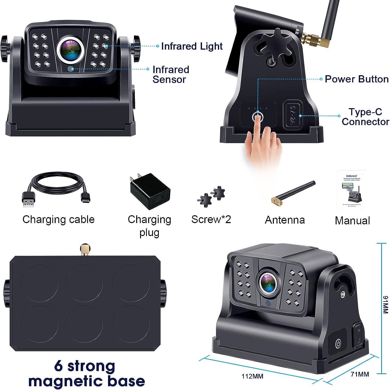• [What's You Get]: You'll receive the DoHonest wireless rear view camera, antenna, screws, power cable, charger, welcome guide, worry-free 24-month warranty, and friendly customer service. Invest in this reliable wireless rv backup camera to improve your driving experience and safety!