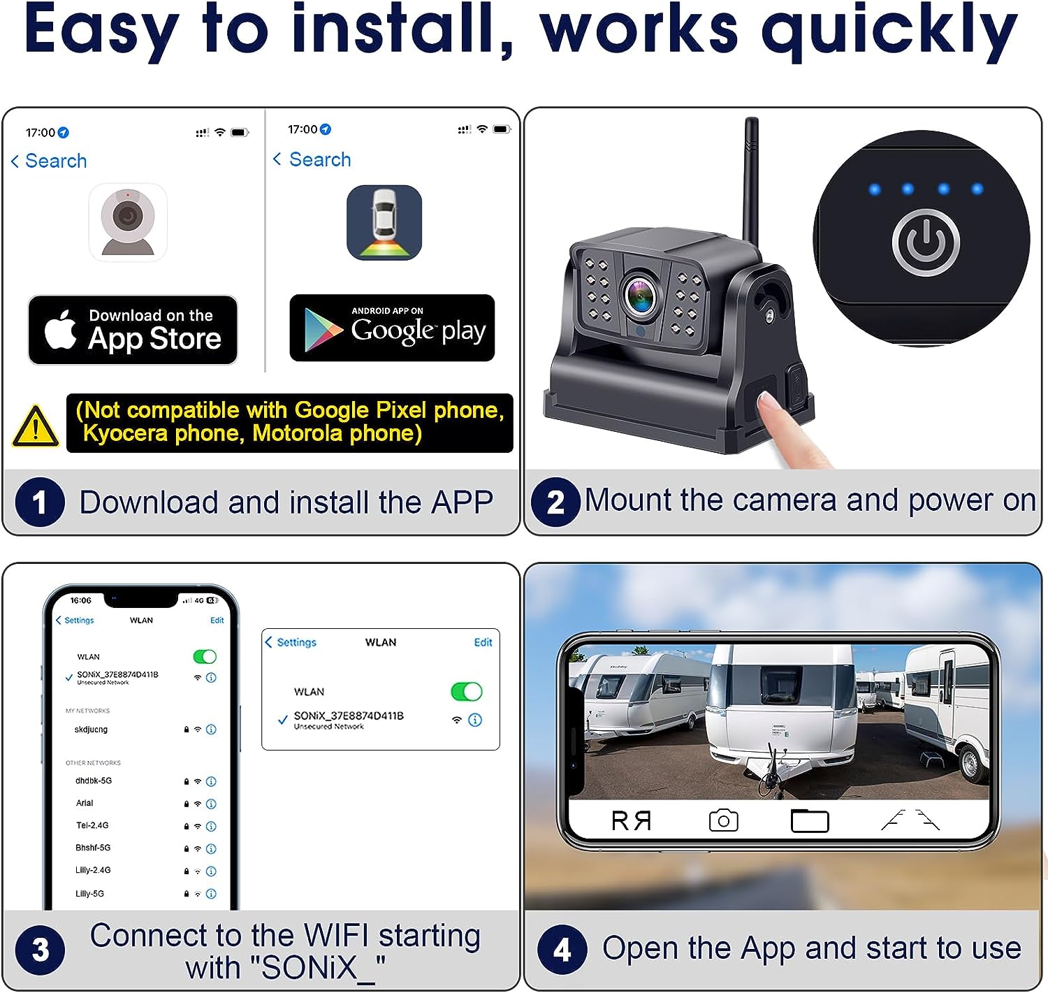 • [Convenient Reverse Camera for Truck]: Use your smartphone as a monitor to avoid adding another back up camera systems for car that may disrupt your driving view. The magnets are covered and flush with the housing. No need to worry about scratching your car.