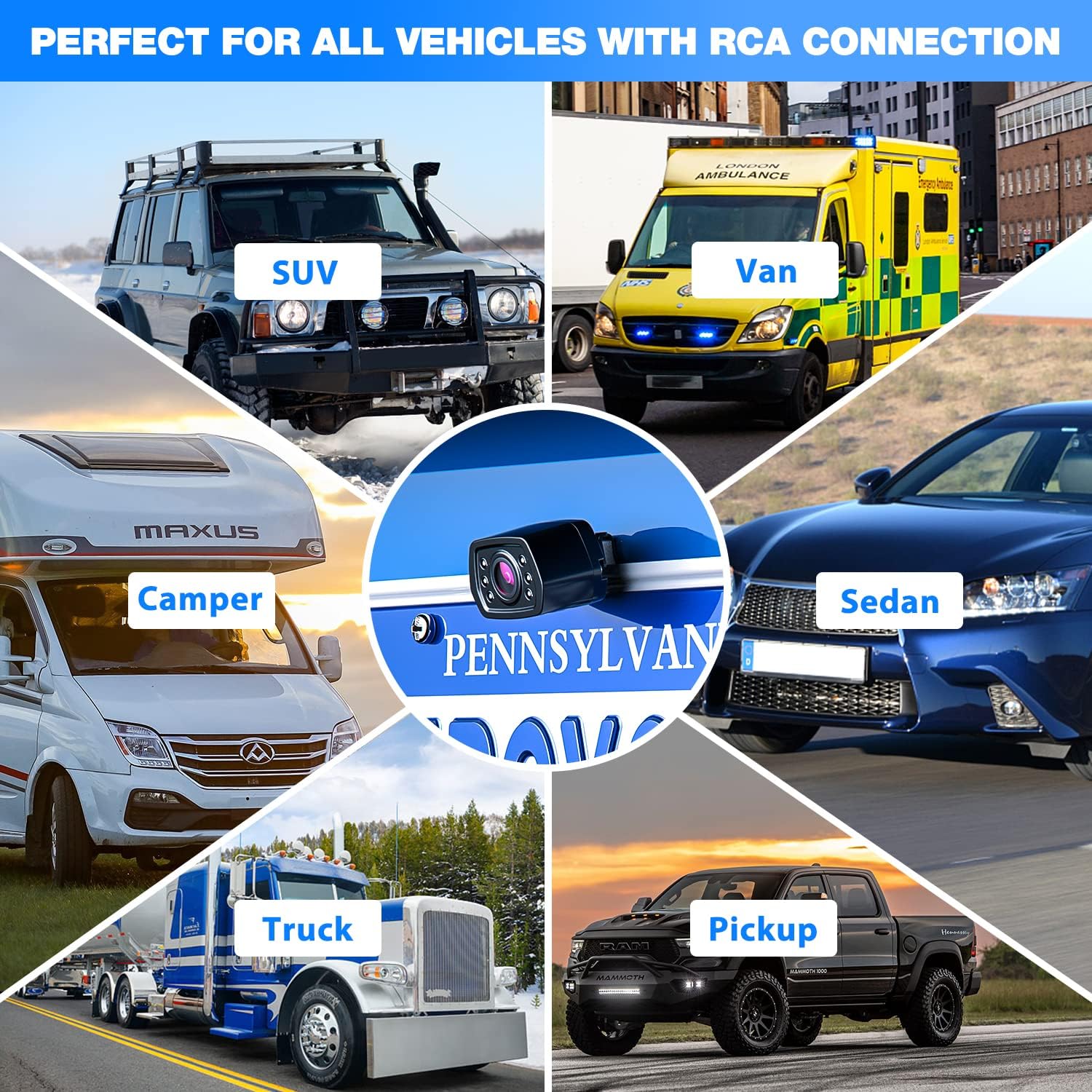 • 【Easy Installation and Wide Compatibility】This reversing camera work perfectly with your radio, screen, stereo or monitor has the RCA connector. It is universal for most vehicle license plate like Trailer/Truck/RV/Pickup/Van/SUV/Camper and so on.