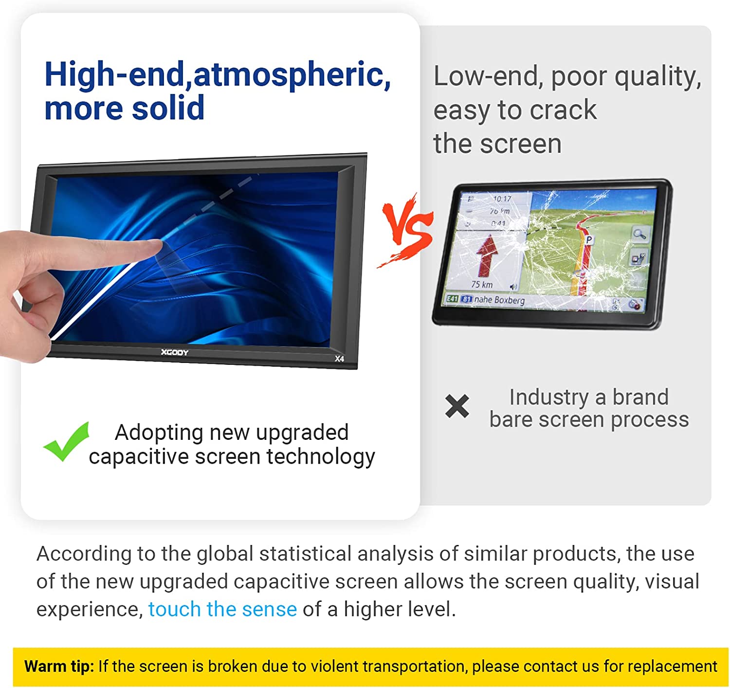 • 【Professional Solution】:XGODY Car GPS Navigation supplies regular maps upgrades and any question inquiry. Our company established a professional technician team to solve various problems for our customers. If You Have Any Questions About This Product, Please Contact Us Via Amazon. We will reply to You within 24 Hours.🚙Note: Car GPS Navigation maintenance: after receiving it, please use the car charger to fully charge then use.