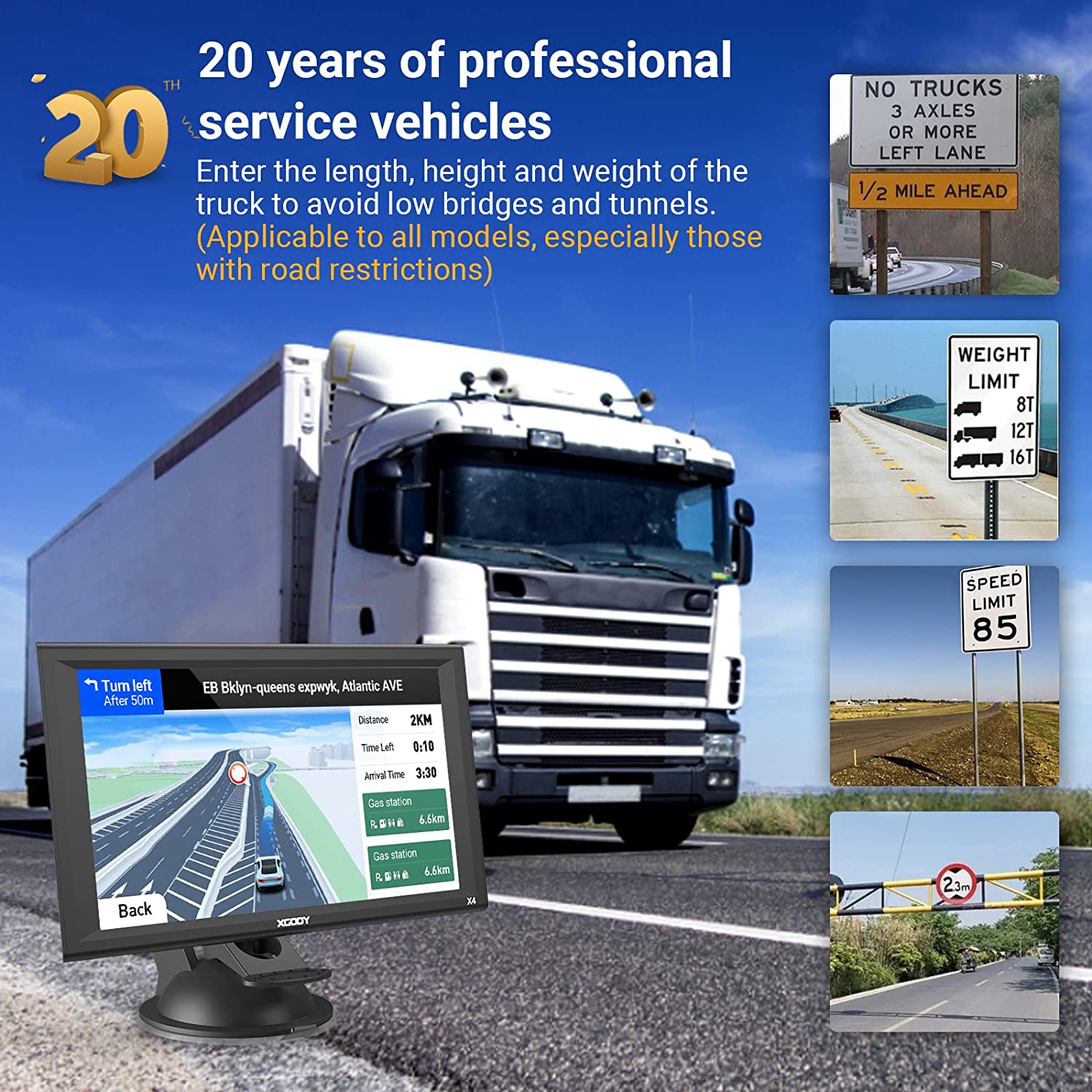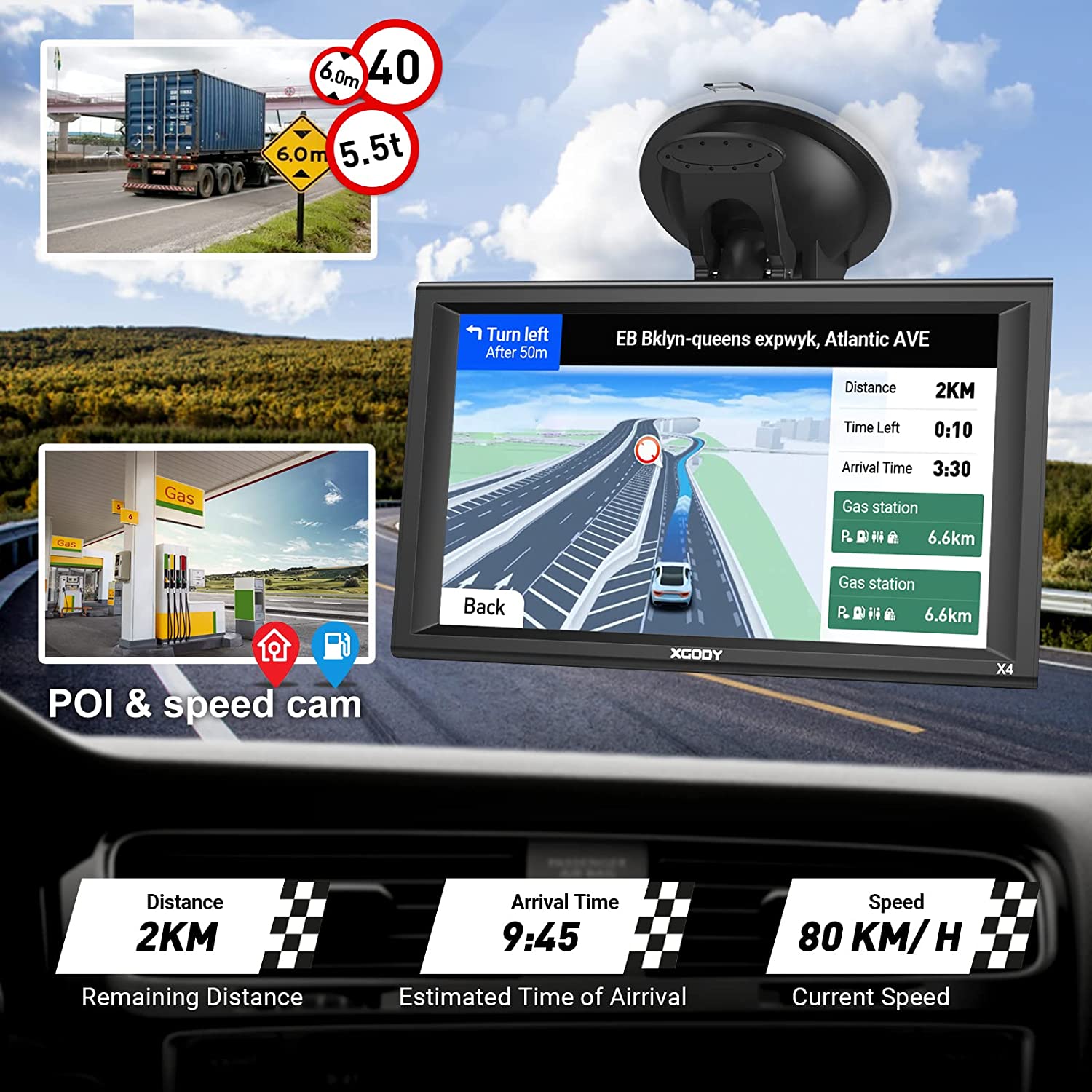 • 🚗【9inch BIG screen for truck】: XGODY X4 brings a 9-inch high-resolution and large screen, brighter with the resolution of 800x480, Clearer screen display, which gives you a better visual experience. You can customize a better route according to your vehicle’s weight, length, height, and width, thus avoiding the roads which have width restrictions or height restriction or weight restriction, etc.