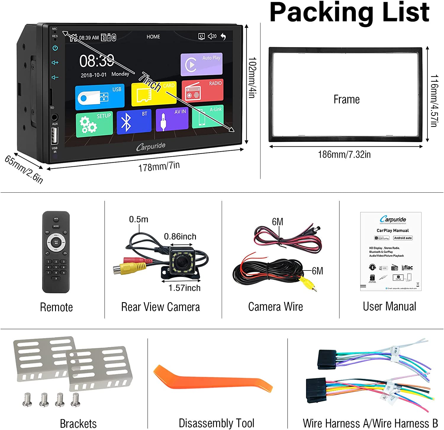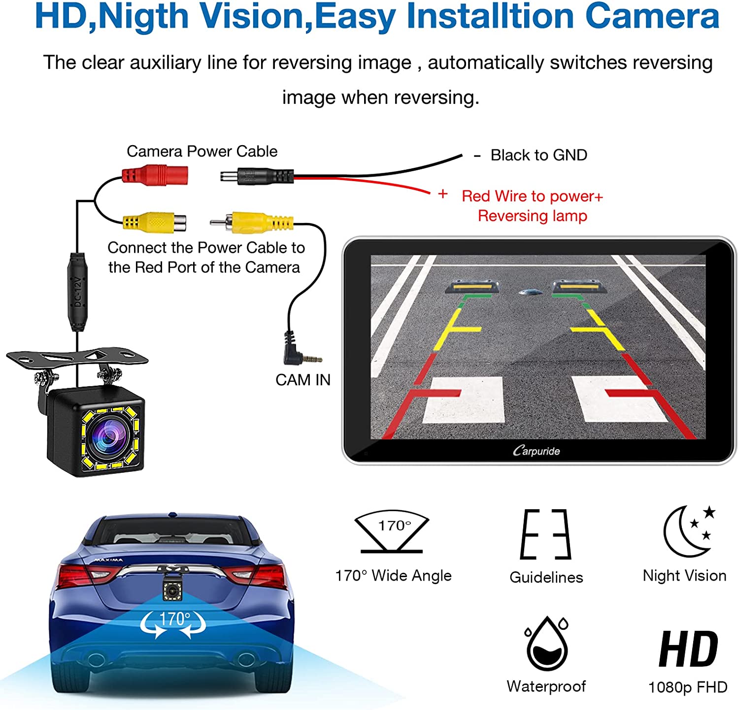 • 🚗【Simple Installation with Backup Camera】Comes with a waterproof night vision camera, when you plug in the cable, and you pull out the reverse gear, the wide view angle HD rear view camera gives you a clear view of what is happening behind your car and makes reversing easier and safer