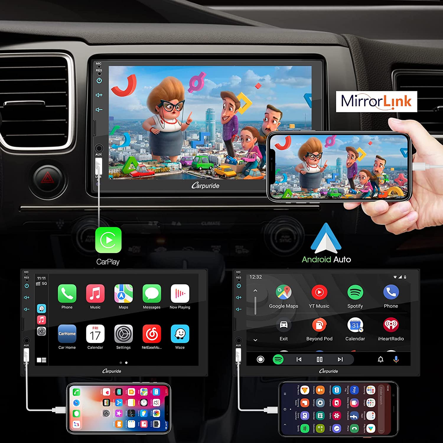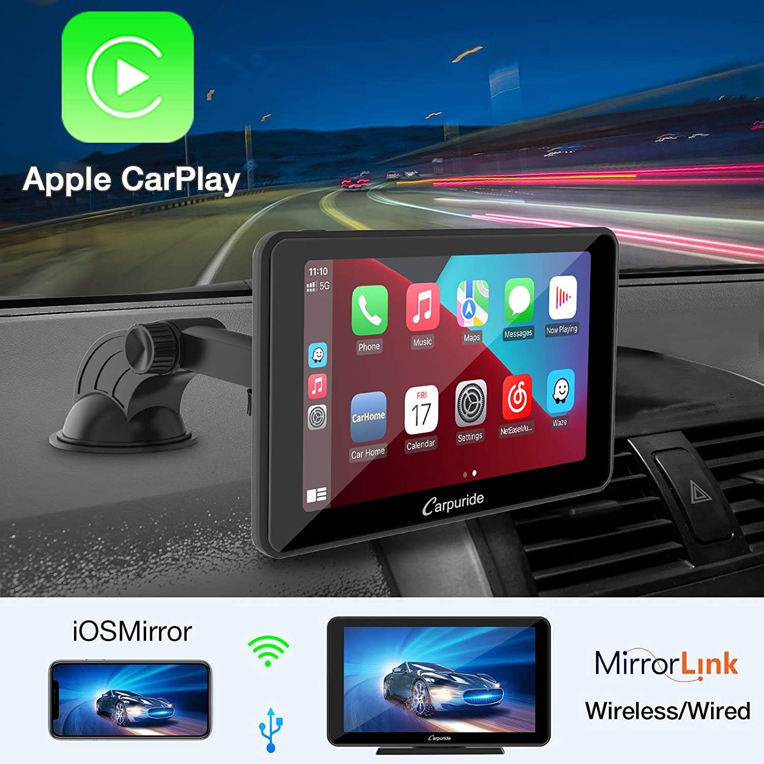 • 🚗【Wirelsee Apple Carplay and Android Auto】 You can use Apple Carplay or Android Auto in the car without having to connect the mobile phone via cable. To view information from your smartphone on your car's built-in infotainment unit Make calls, send text messages, access maps, listen to music and more audio - all so you can focus on the road.