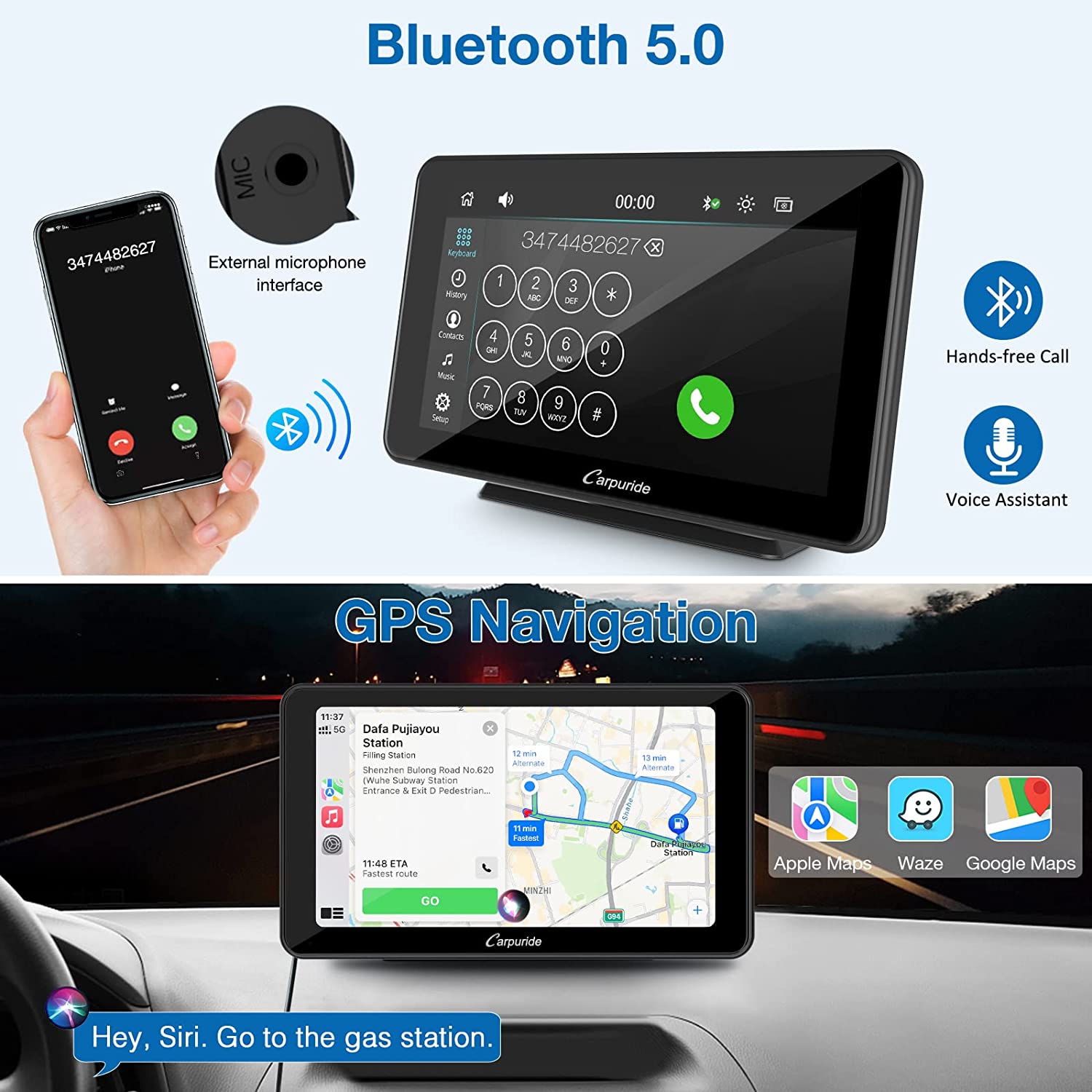 • 🚗【Bluetooth 5.0 Make driving safer】The Bluetooth hands-free system and built-in clear mic allows you to answer the phone while driving, without having to hold your phone all the time, and support voice control at the same time, so you will always keep your eyes on the road ahead. Ensure that you reach your destination safely. And you can listen to wonderful music on the way home from get off work.