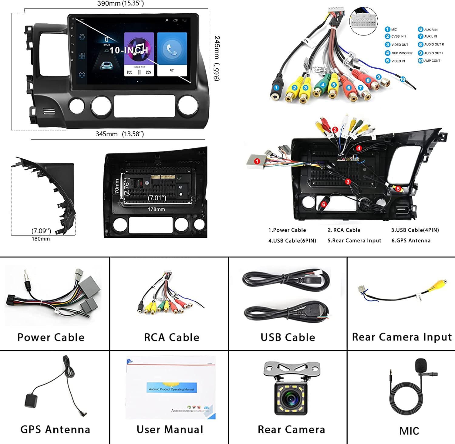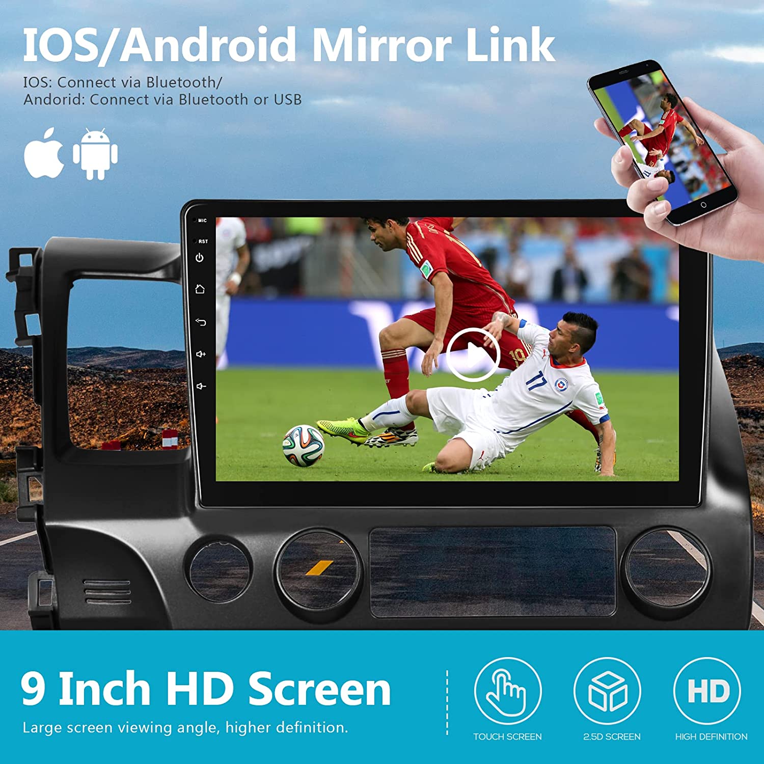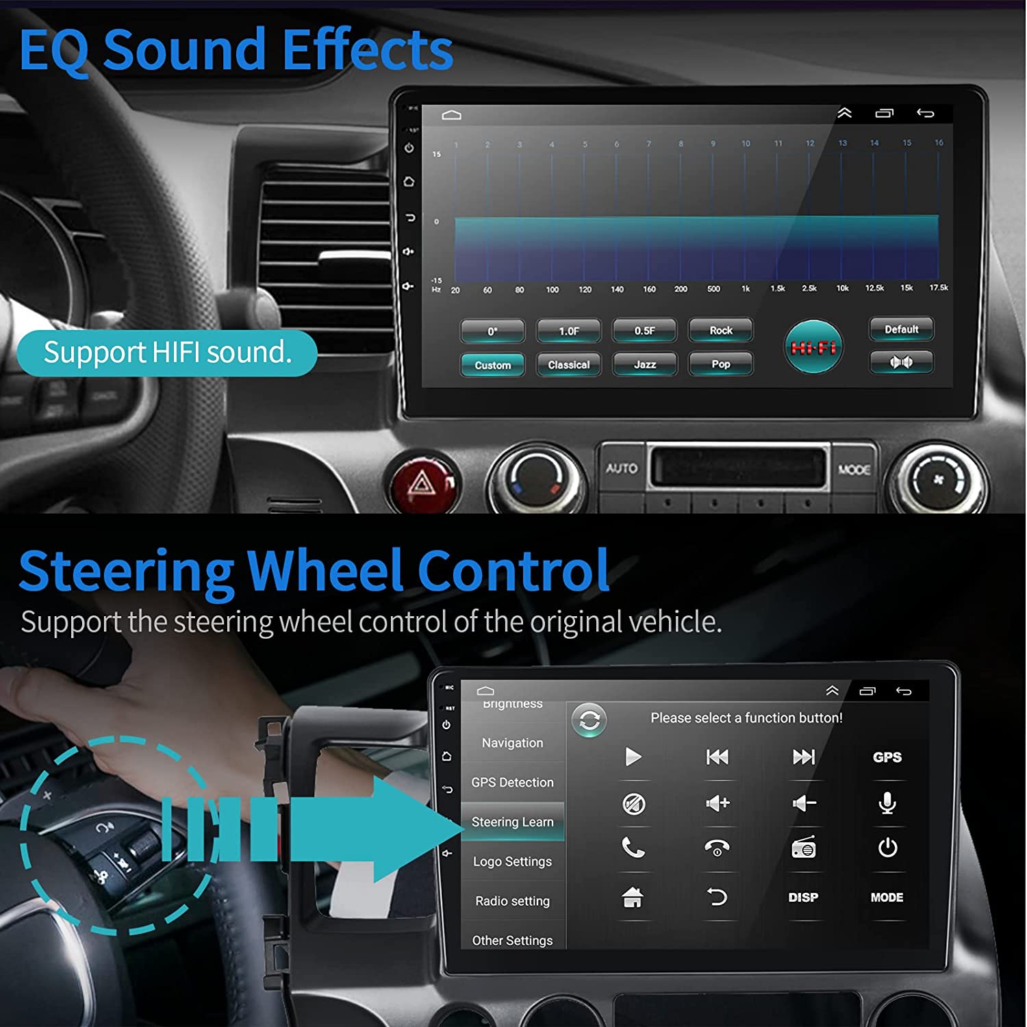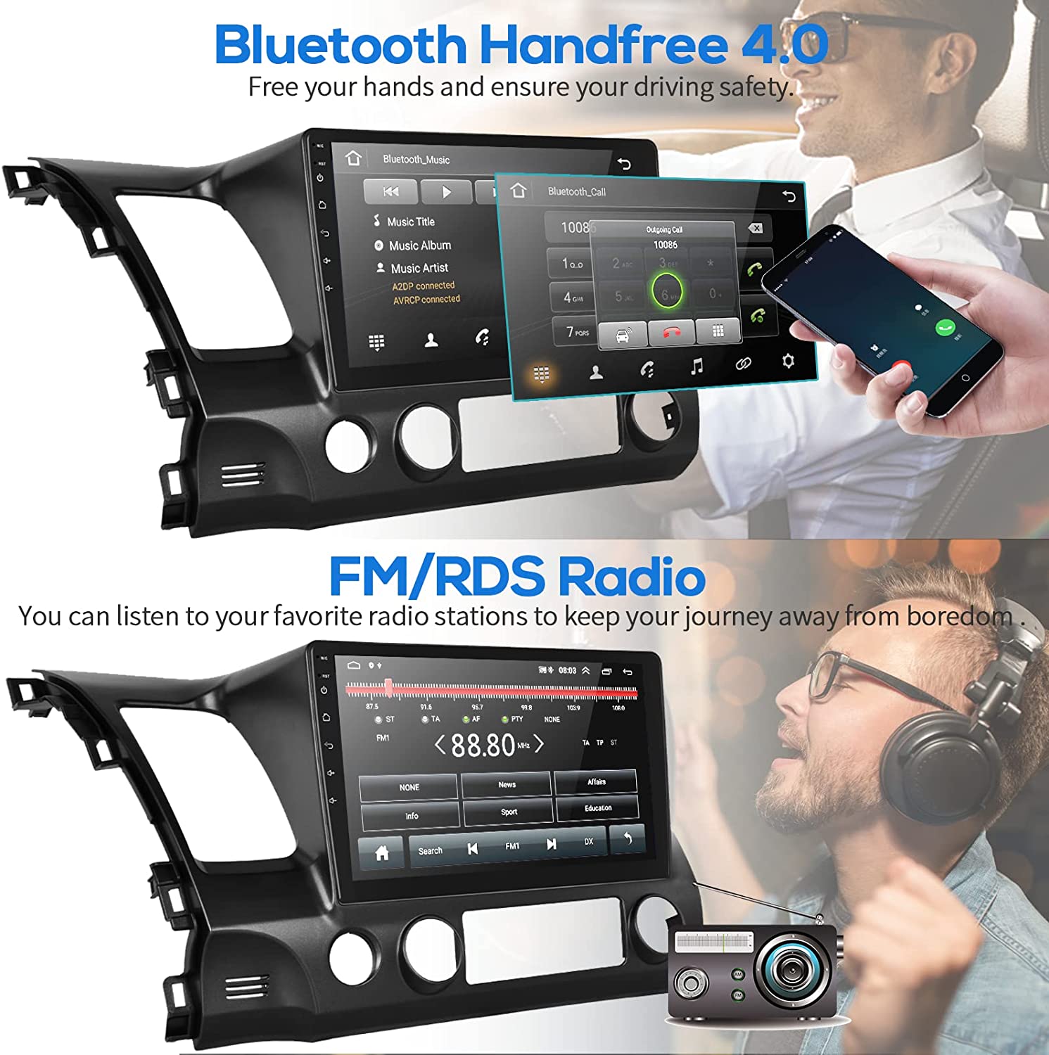• Bluetooth Call & EQ Systerm: In addition to stable BT stereo car and hand free calling, FM/RDS Radio, music player, there are EQ adjust, you can tune into your favorite music sound mode. Support HIFI sound .Your driving will be fun with the android auto radio for Honda Civic 2006-2011.