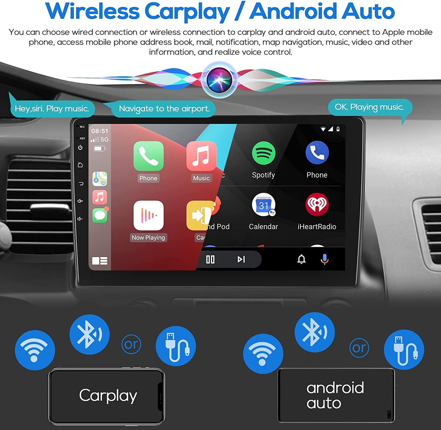 for Honda Civic 2006-2011 Wireless Carplay Android Car Stereo Support Wireless Android Auto with WiFi GPS Navigation AHD Backup Camera FM RDS Radio Receiver EQ HiFi Steering Wheel Controls