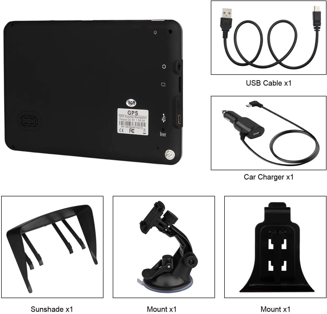 • 【Portable Navigation System】Accurate satellite navigation,lifetime map updates and a very well designed,bright and easy to read the screen.Box contents: ① GPS Navigation ② Car Charger ③ USB Cable ④ Suction Cup Mount ⑤ Clip Holder ⑥ User Manual