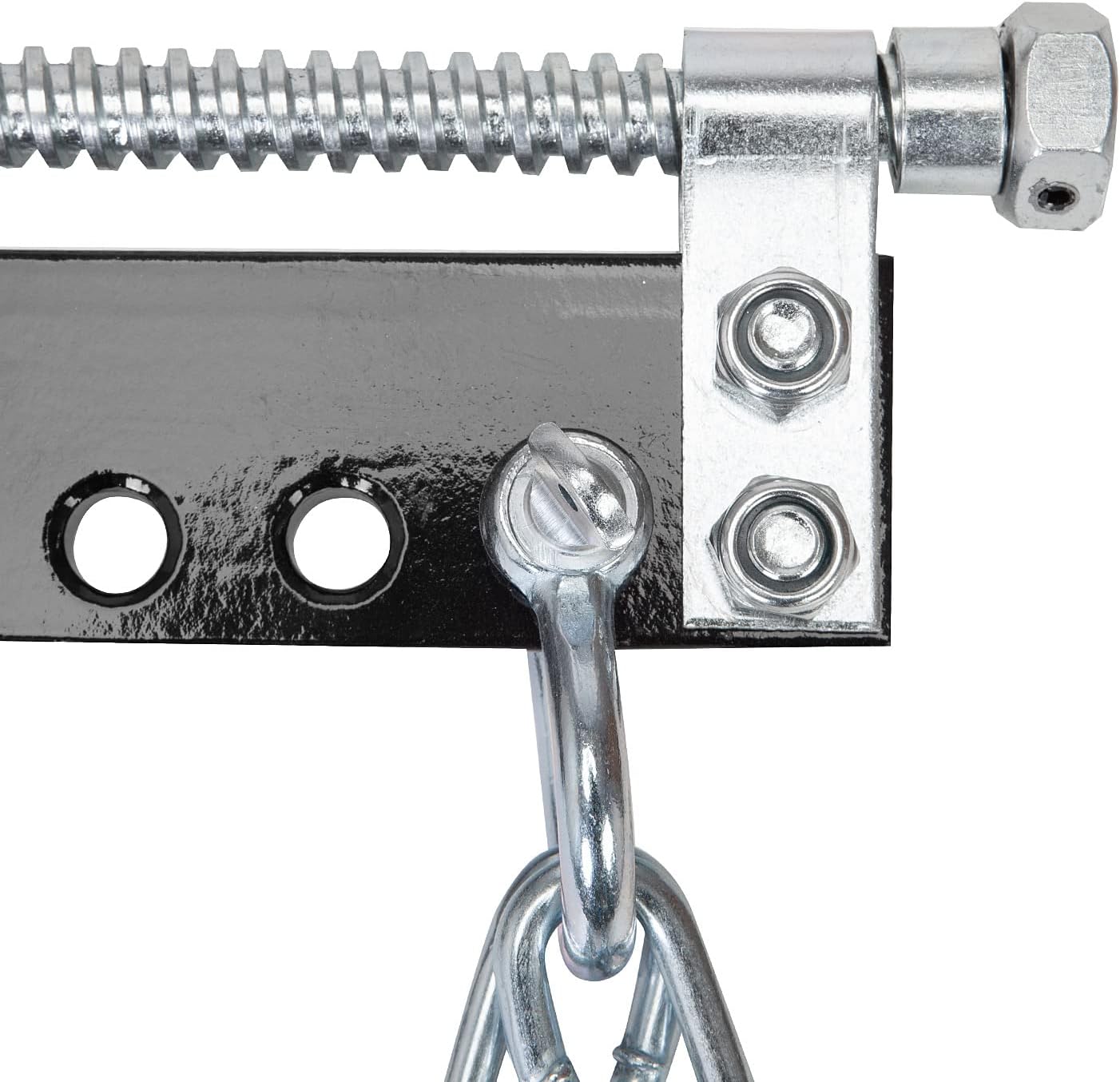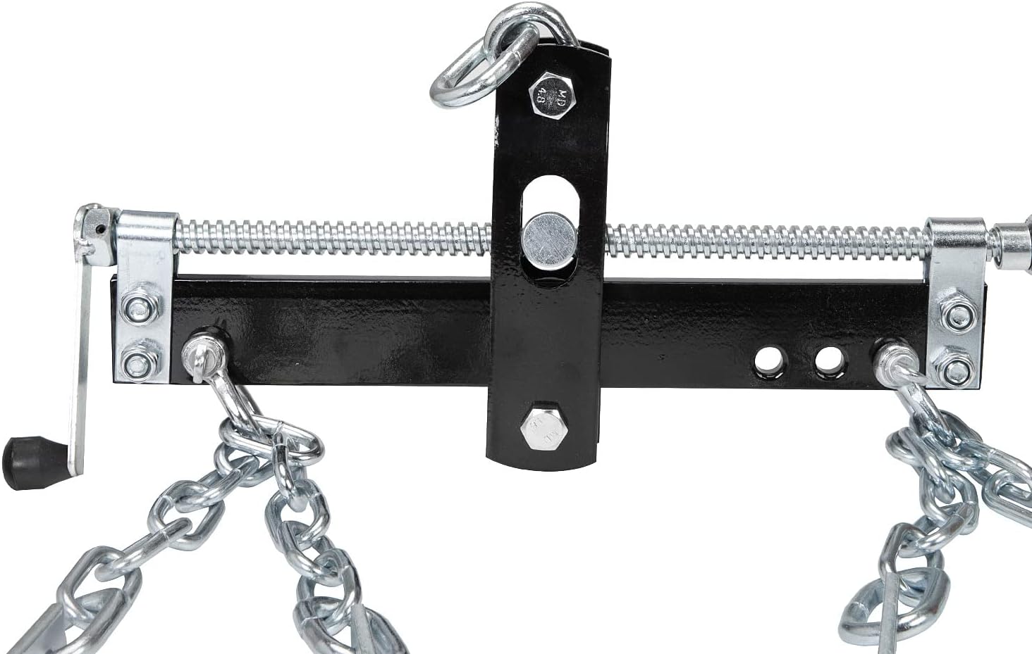 • Simply attach the chains to the engine and use the crank handle for quick and ease adjustments with the threaded shaft, which balances the load with ease