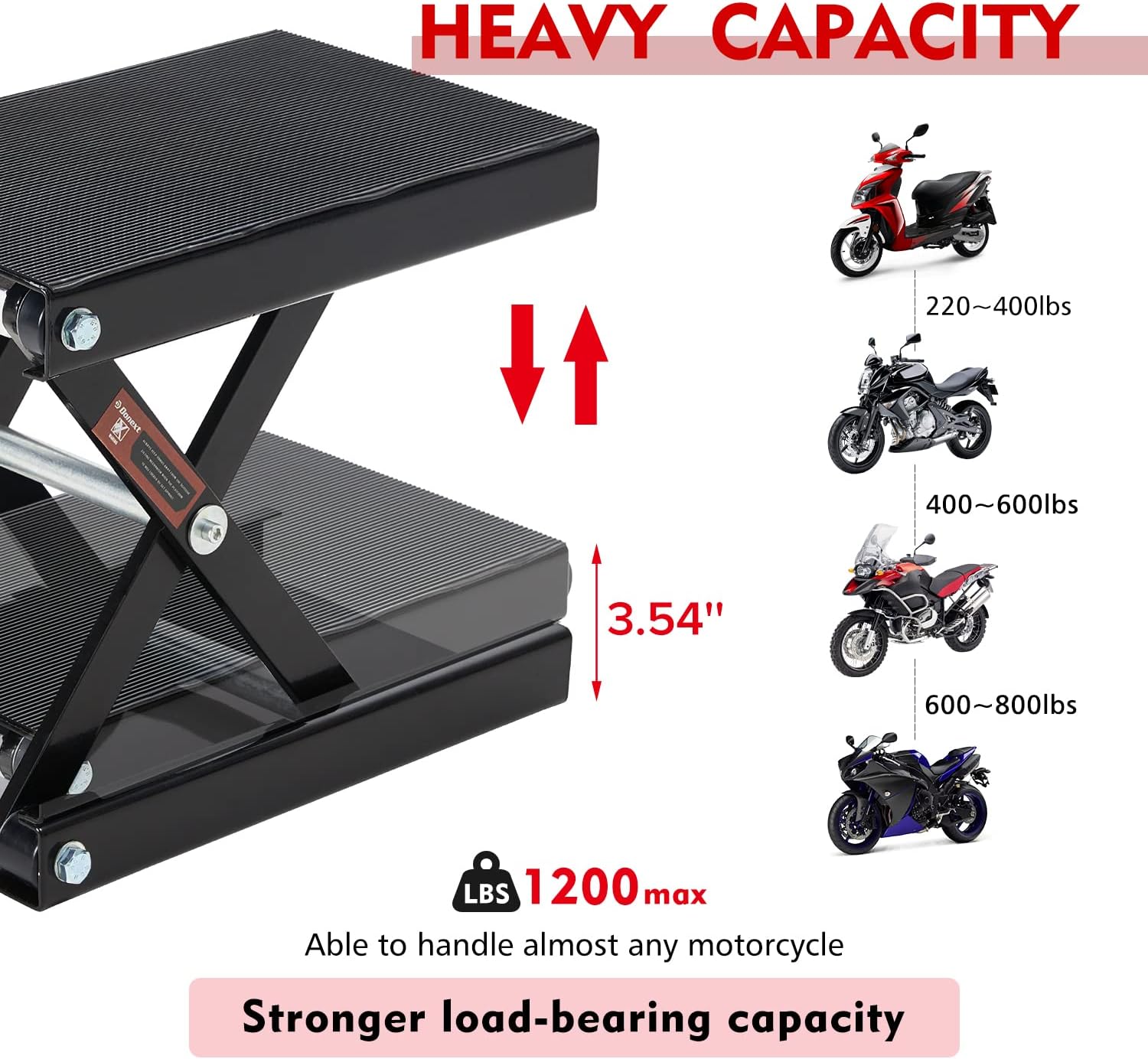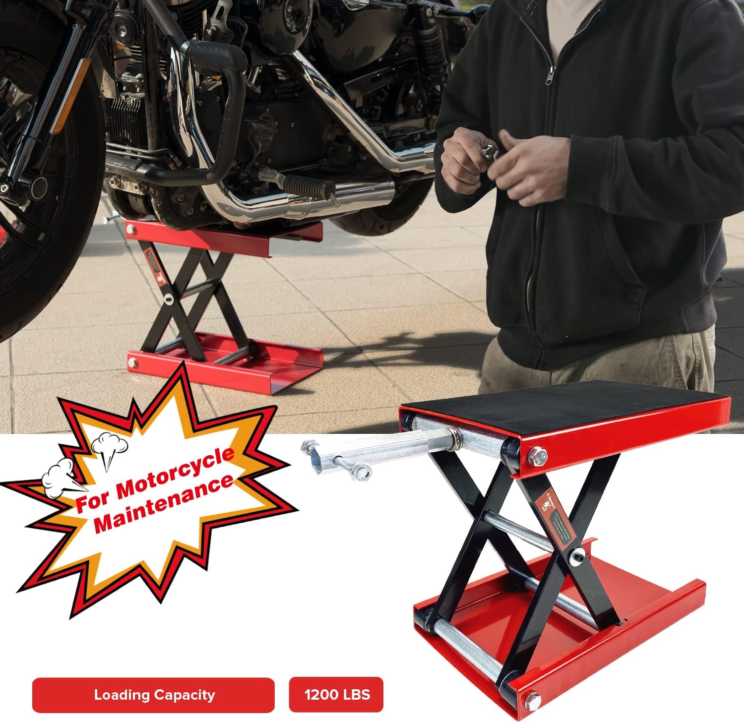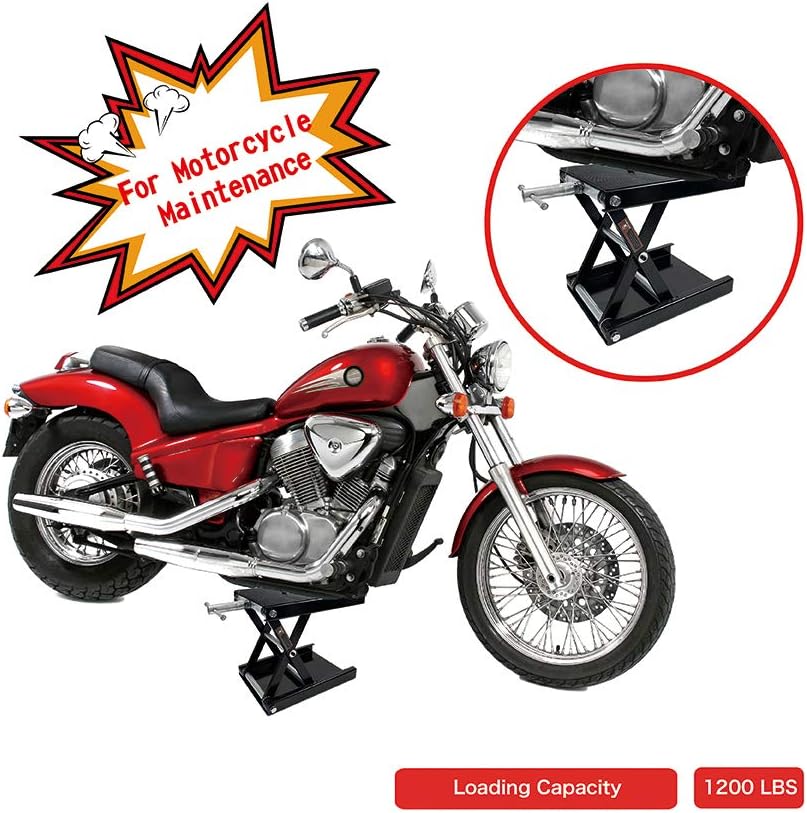 Donext Motorcycle Lift Scissor Jack, 1200 LB Capacity Wide Deck Hoist Stand Maintenance Bikes ATVs Garage Repair Center Stand Lift Jack, Red