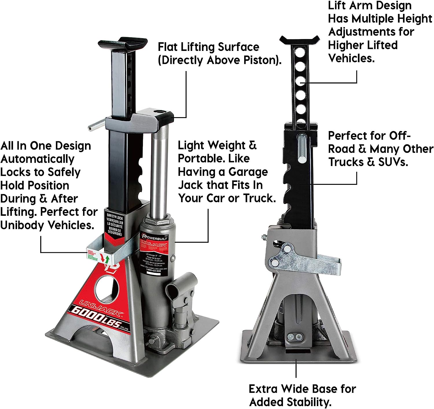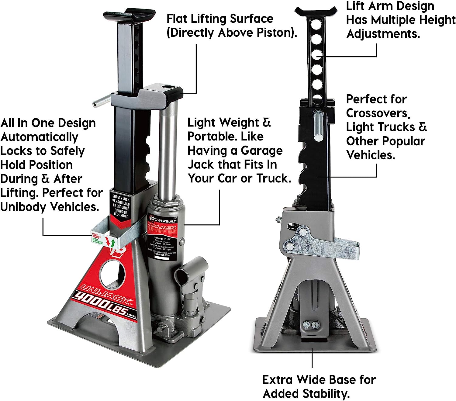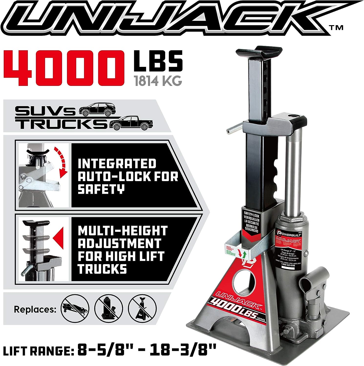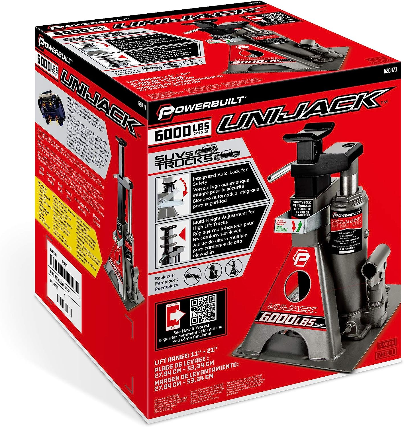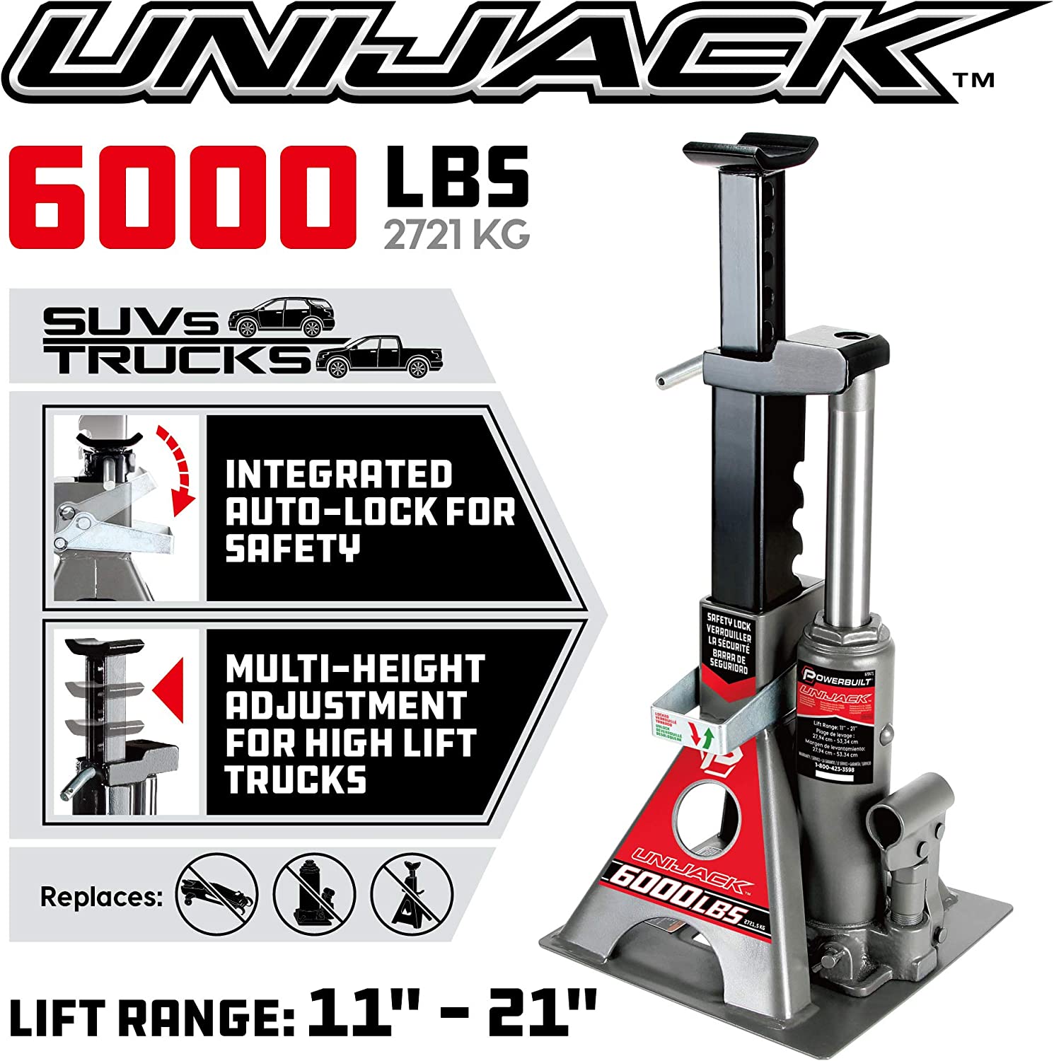 Powerbuilt 3 Ton, Bottle Jack and Jack Stands in One, 6000 Pound Capacity, All-in-One Car Lift, Heavy Duty Vehicle Unijack, Wide Base, 620471