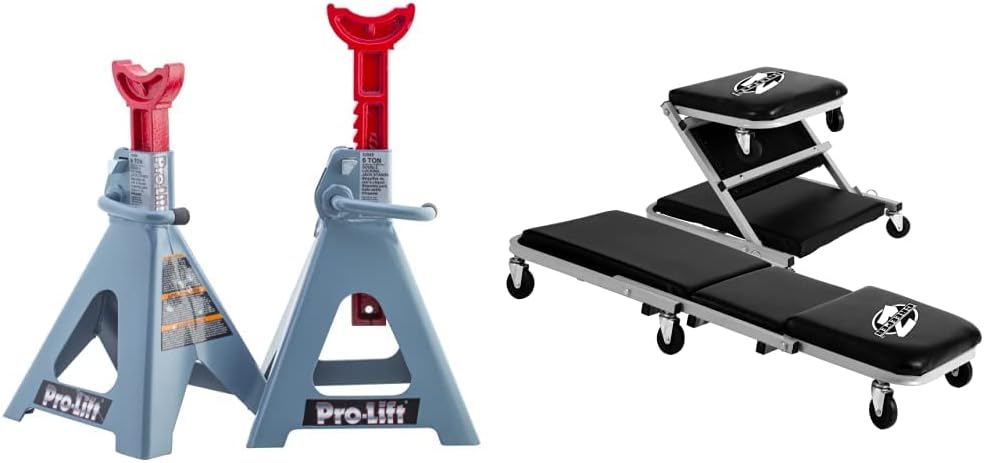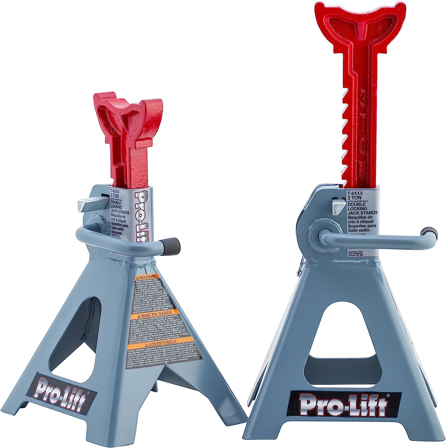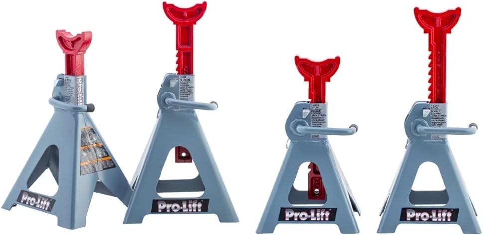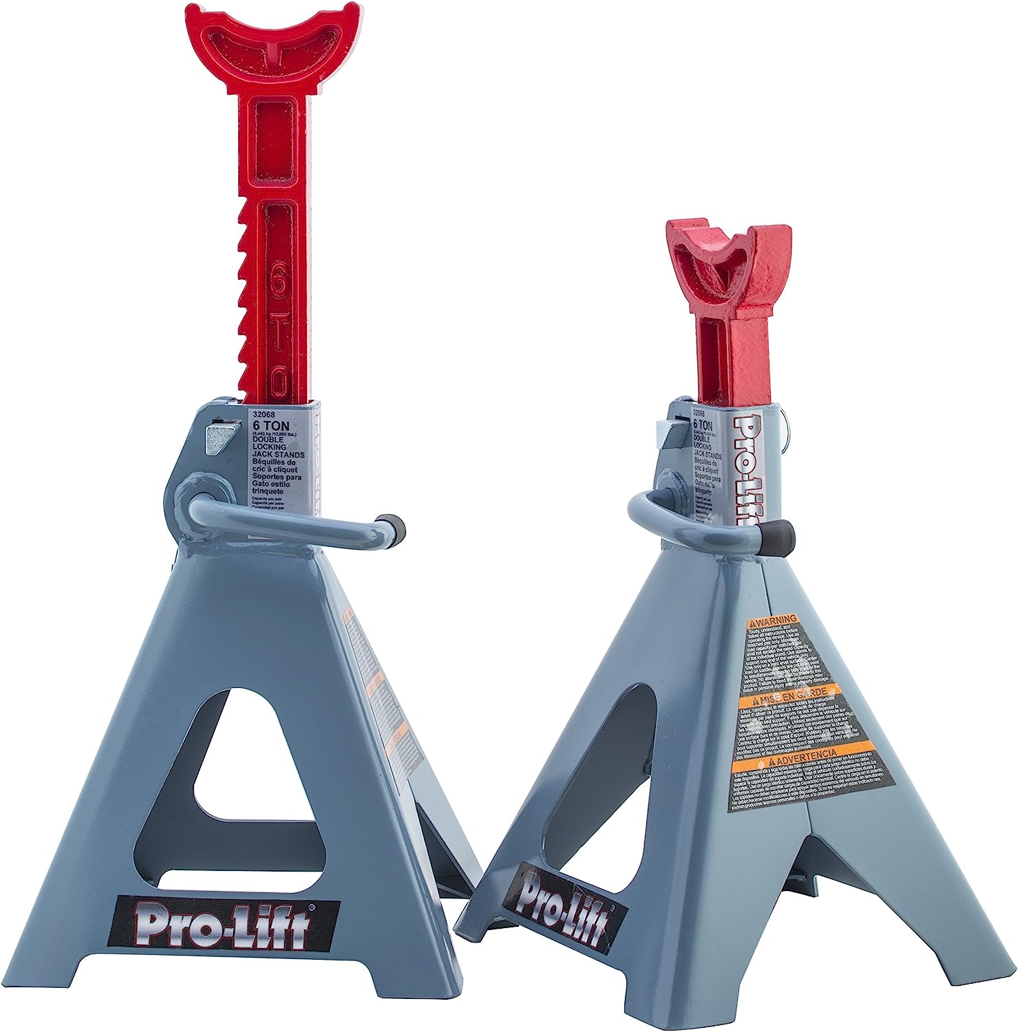 Pro lift T-6906D is a 6-ton double locking jack stands. It features a high quality cast ductile Iron Ratchet bar and sturdy stamped steel base provide durability and longevity which makes ideal for home, professional and farm use. Always used in pairs, counter weighted pawls serve as a safe secure locking device to prevent the load from accidental disengagement. An attached pin lock provides support, locking the ratchet bar in place for an additional carrying point. One piece, multi position ductile ratchet bar provides strength and durability as well as a quick adjustment mechanism that securely locks into the desired position.