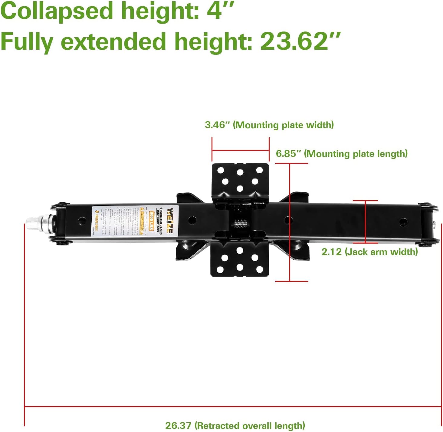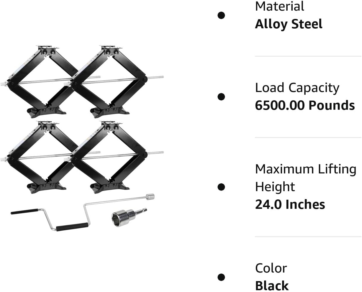 WEIZE Camper RV Trailer Stabilizer Leveling Scissor Jacks with Handle 24" 6500lbs Set of 4