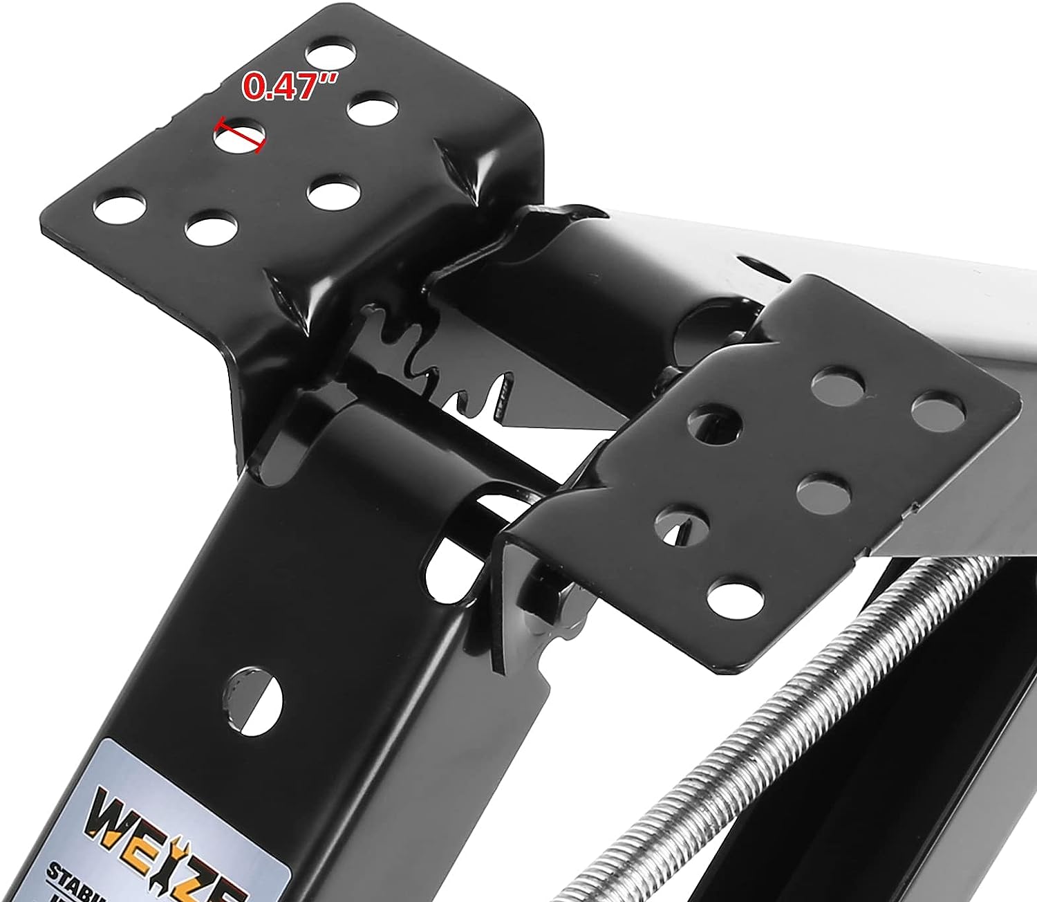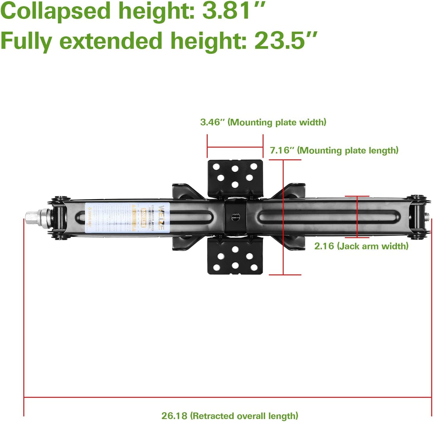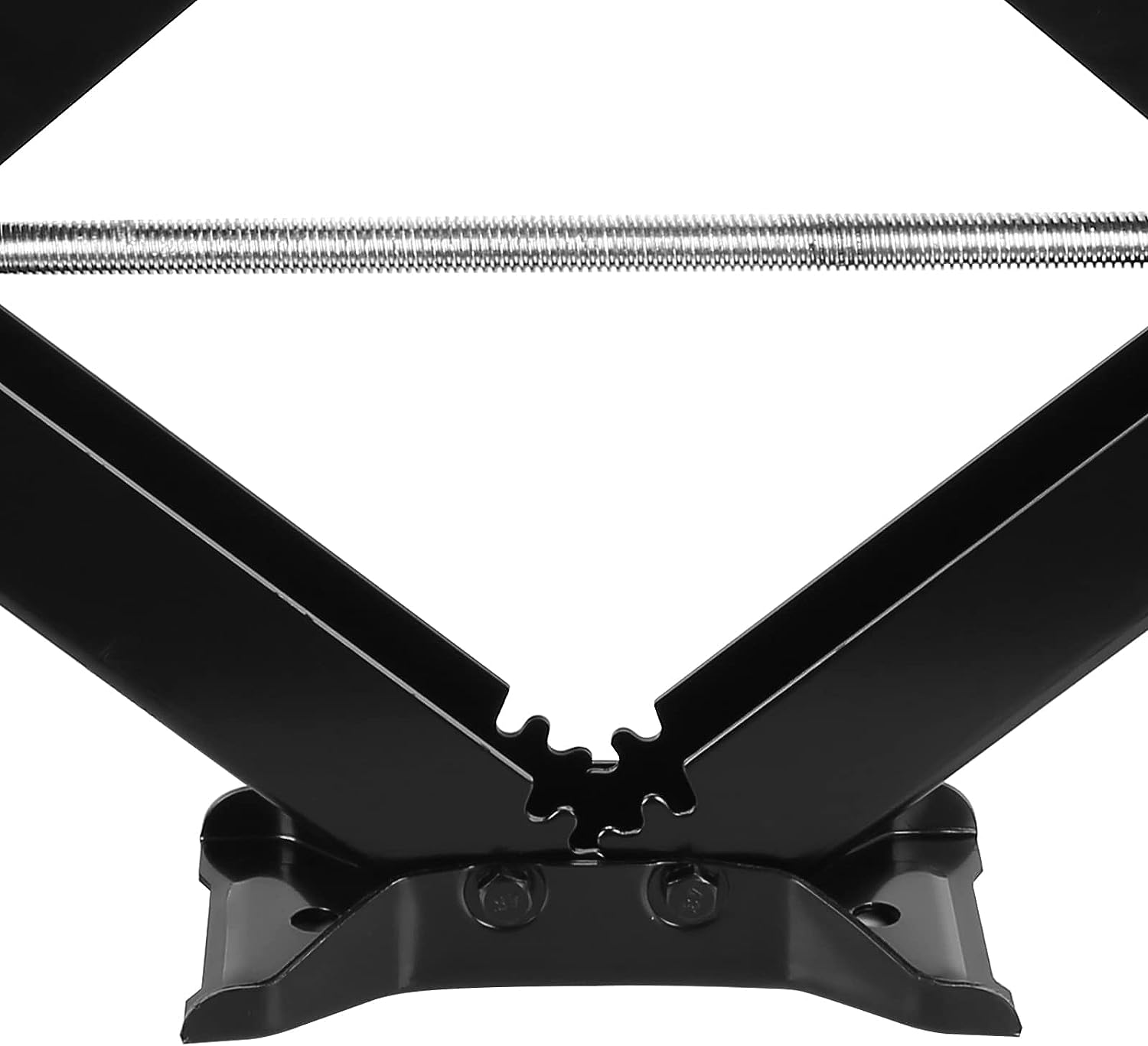 • Tooth gear design of the camper scissor jack arms ensures straight line vertical extension and retraction, the jack raises quickly and the crank handle turns easily.