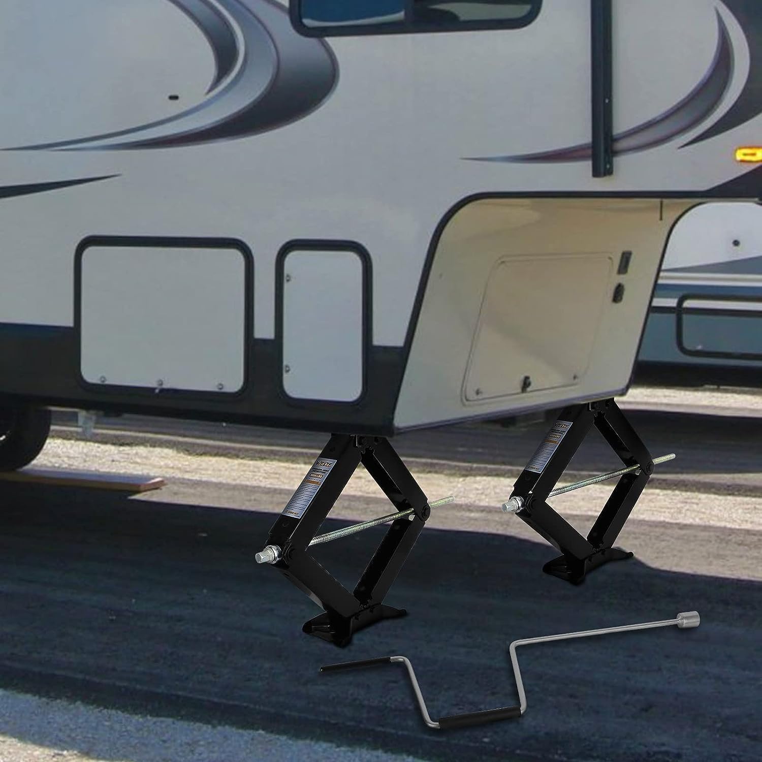 • Includes: 4 leveling scissor jacks, 1 crank handle.