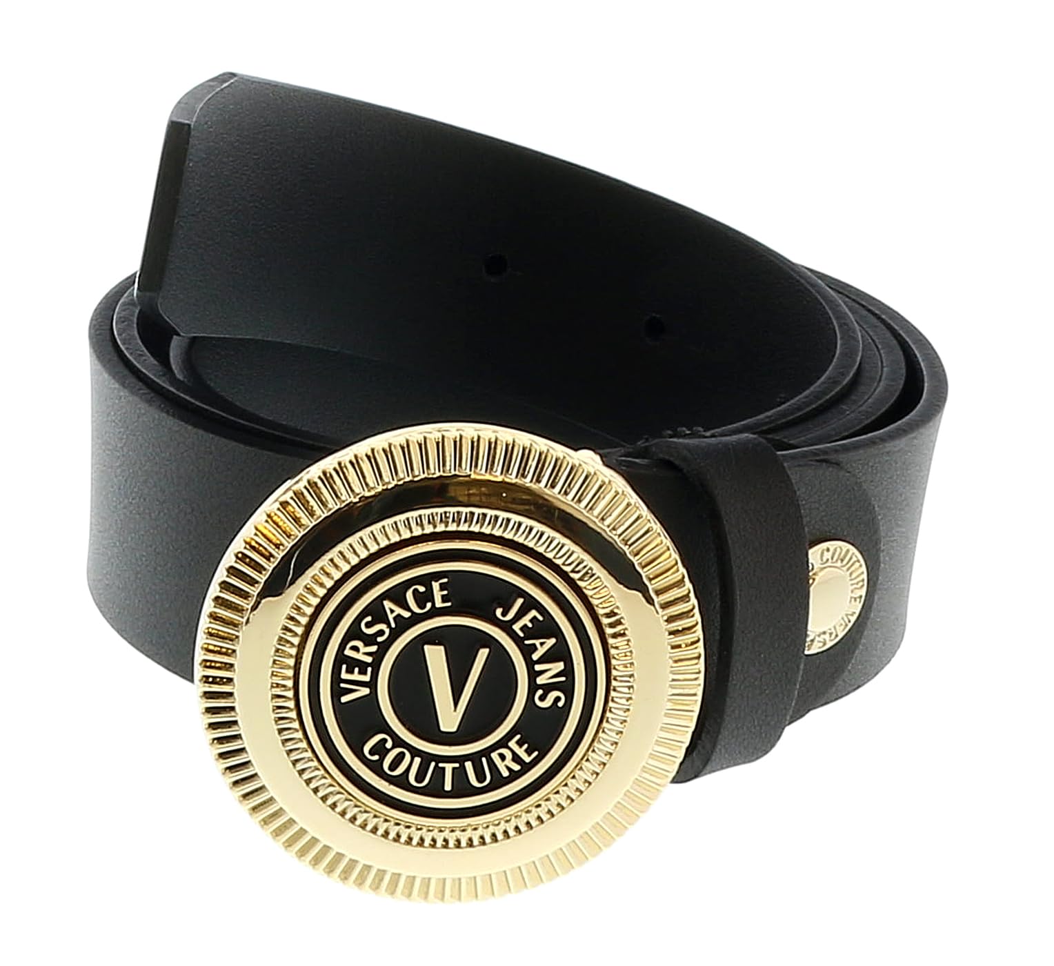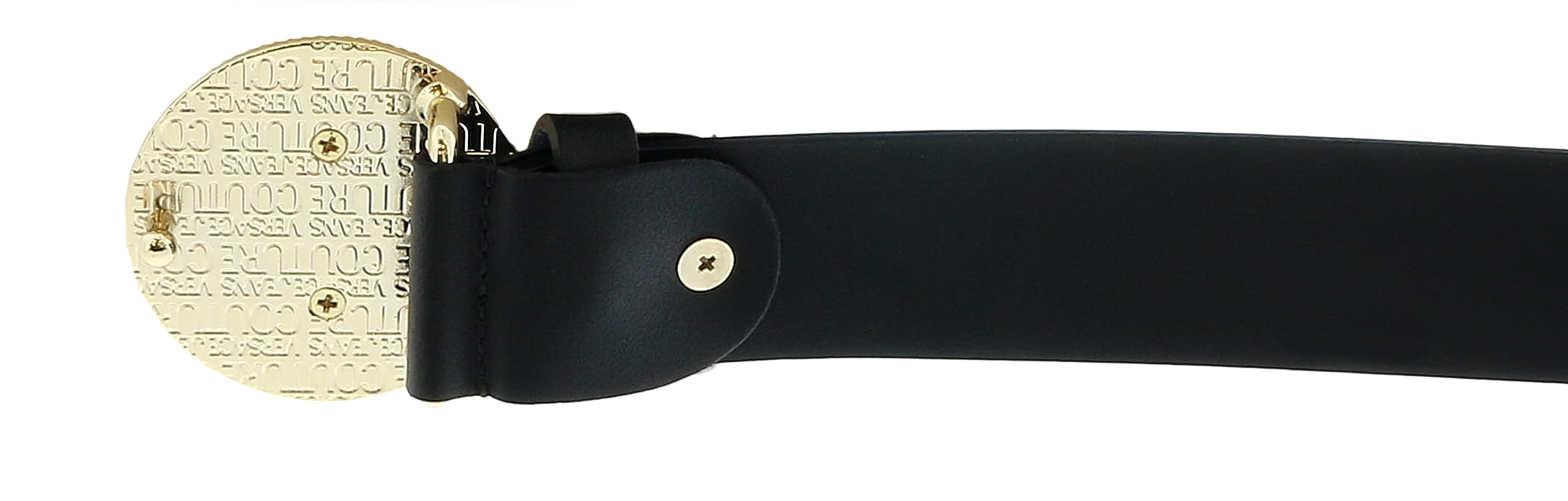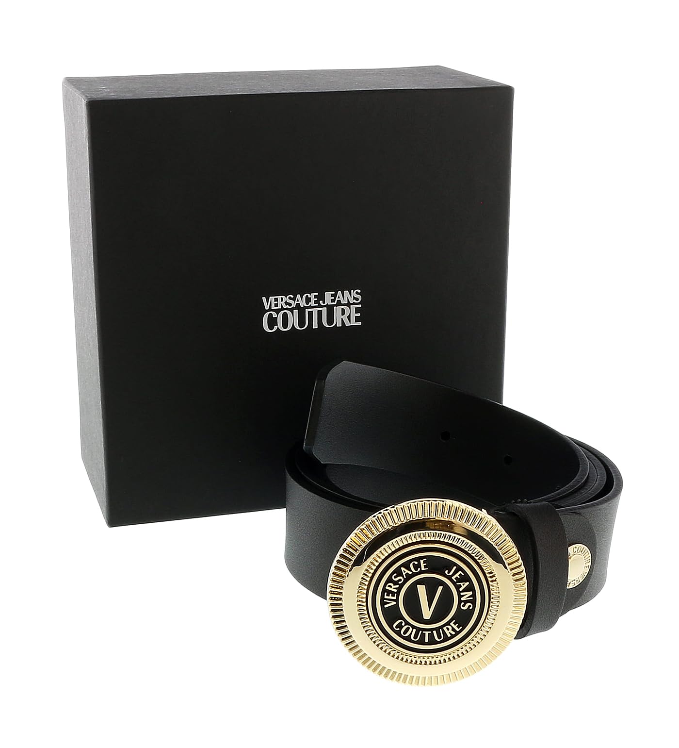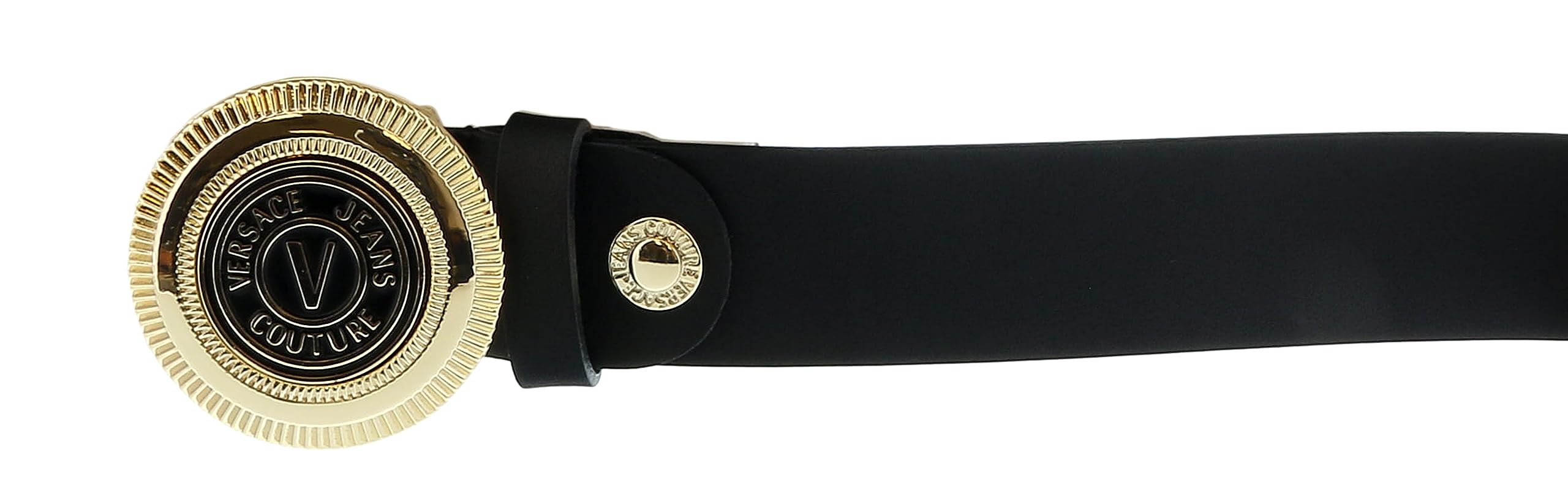Details: Belt by Versace Jeans Couture 100% Leather Gold Buckle Logo on metal buckle 3.5cm width Made in Italy 75YA6F08 71627 N77 EF