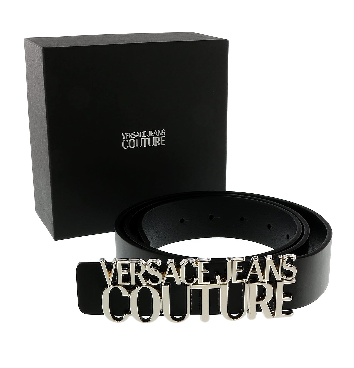 Details: Elevating a polished design with a signature lettering buckle, this Versace Jeans Couture belt makes a sophisticated addition to any gent's accessories edit. Crafted in Italy from genuine leather, the refined piece pairs effortlessly with suiting and denim alike.