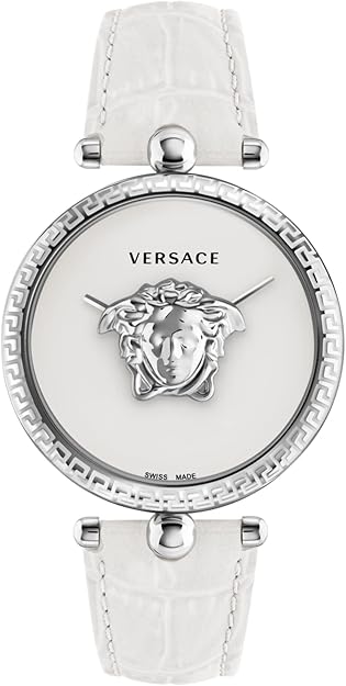 Versace Collection Luxury Womens Watch Timepiece with a White Strap Featuring a Silver Case and White Dial