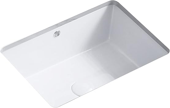 18 Inch White Rectangle Vessel Sink for Bathrooms 18.3" x 13.78" Small Undermount Bathroom Sink Ceramic Porcelain Under Counter Basin Sink with Overflow 465mm x 350mm Lavamanos Para Baͱos