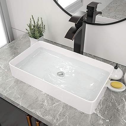 24"x14" Rectangular Vessel Sink Modern Above Counter Bathroom Sink White Porcelain Ceramic Vessel Vanity Sink Art Basin