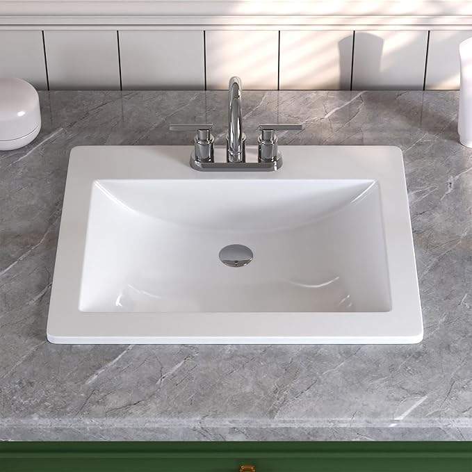 Bathroom Vessel Sink, DeerValley, 21_„�x18_„�Rectangular Drop-in Sink for Bathroom Ceramic Vessel Sink White Bathroom Sink Under Counter Modern Art Basin with Overflow and Three Faucet Holes, DV-1DS0122