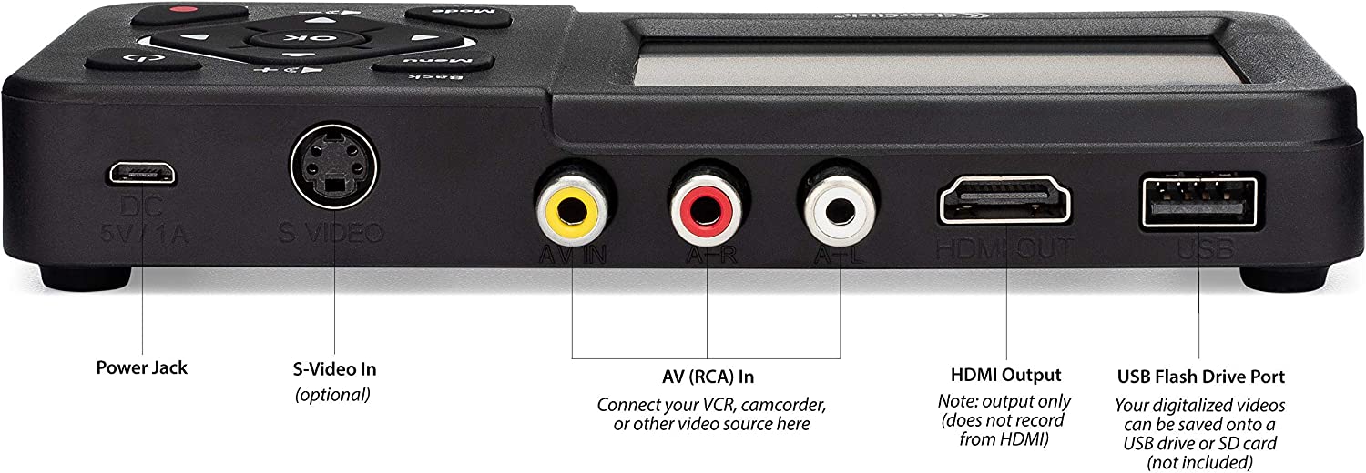 • Record and Digitalize Video From VHS, VCR's, DVD Players, DVR's, Camcorders, Hi8, & Retro Gaming Systems (VIDEO SOURCE NOT INCLUDED; DOES NOT PLAY VIDEO TAPES)