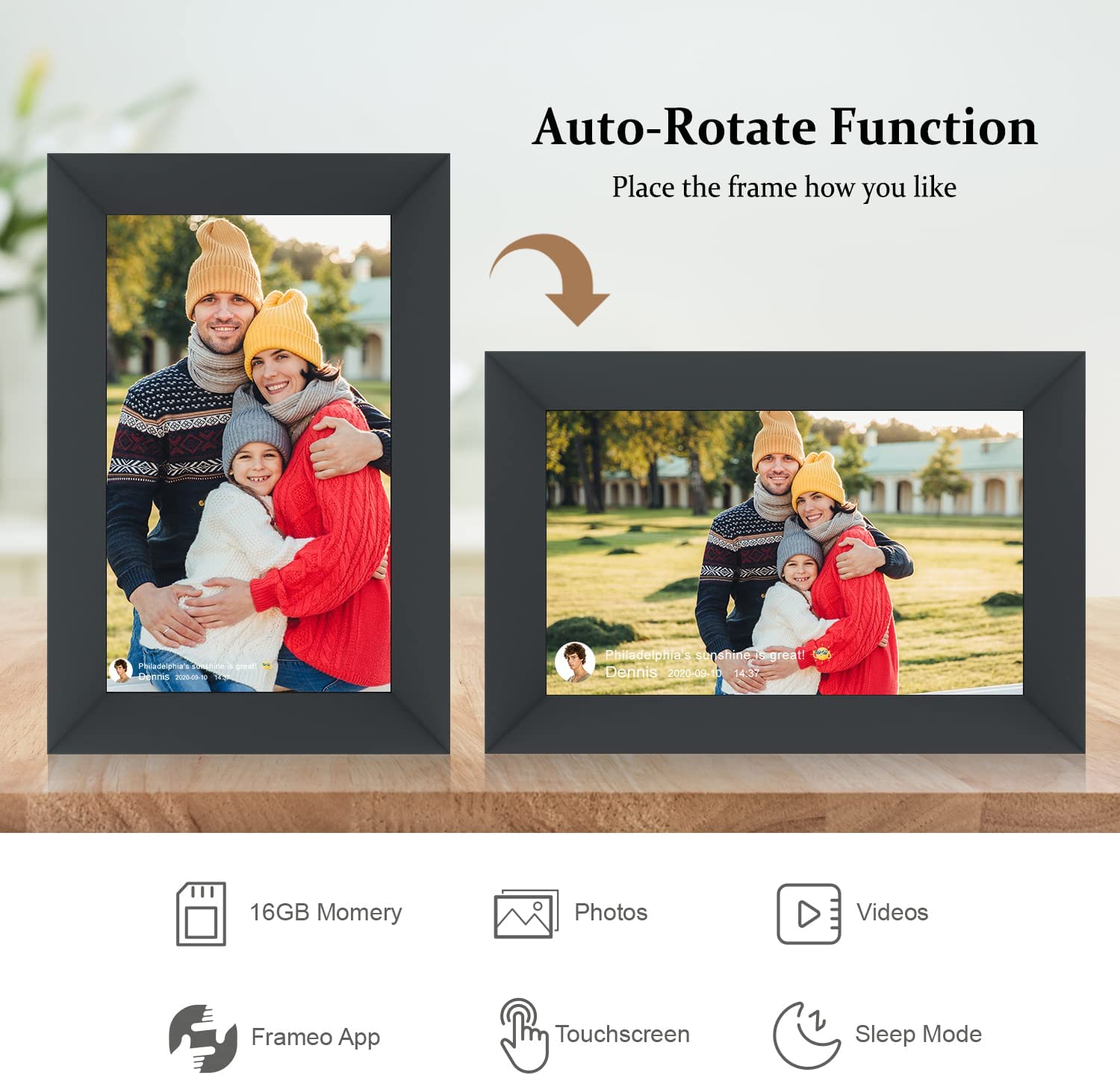 • ❤AUTO-ROTATE & LARGE INTERNAL STORAGE: AEEZO digital picture frame can automatically rotate photos to adjust the direction, which allows you to place the WiFi digital photo frame in either portrait or landscape mode or on the wall. Built-in 16GB memory empowers a huge capability of storage. Also frameo digital picture frames support max 64GB SD card or USB driver for file management.