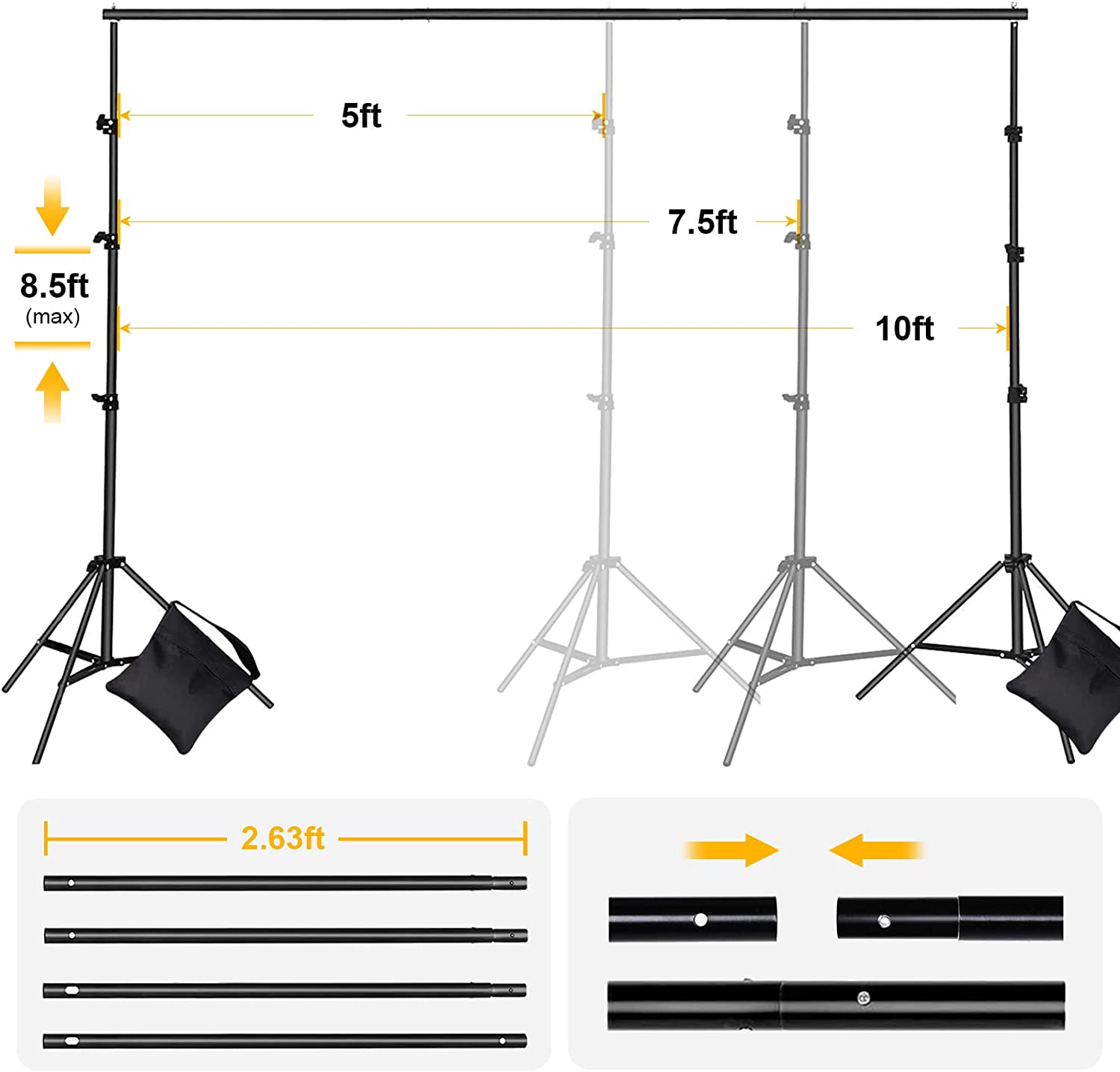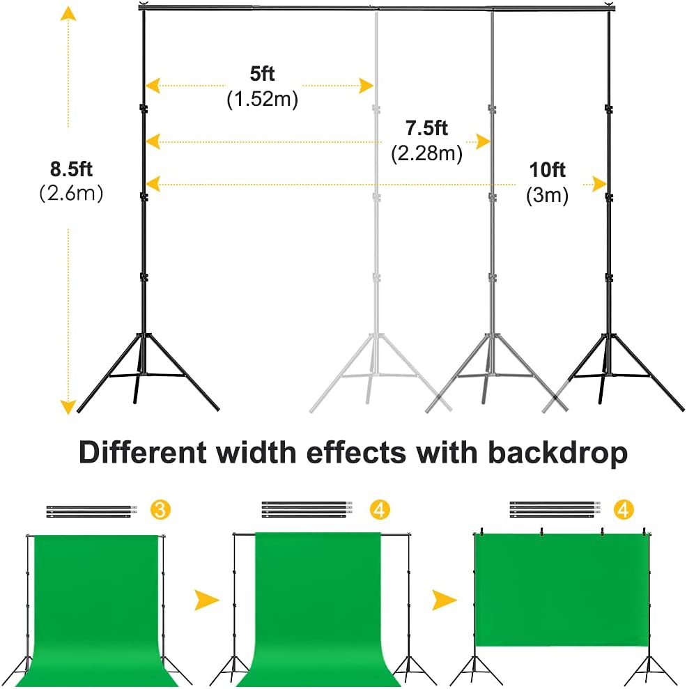 • 【ADJUSTABLE BACKDROP FRAME】Height-adjustable from 2.7ft to 7ft; Width-adjustable from 5ft to10ft with 4 crossbars. Easy to assemble and disassemble in just a few minutes.