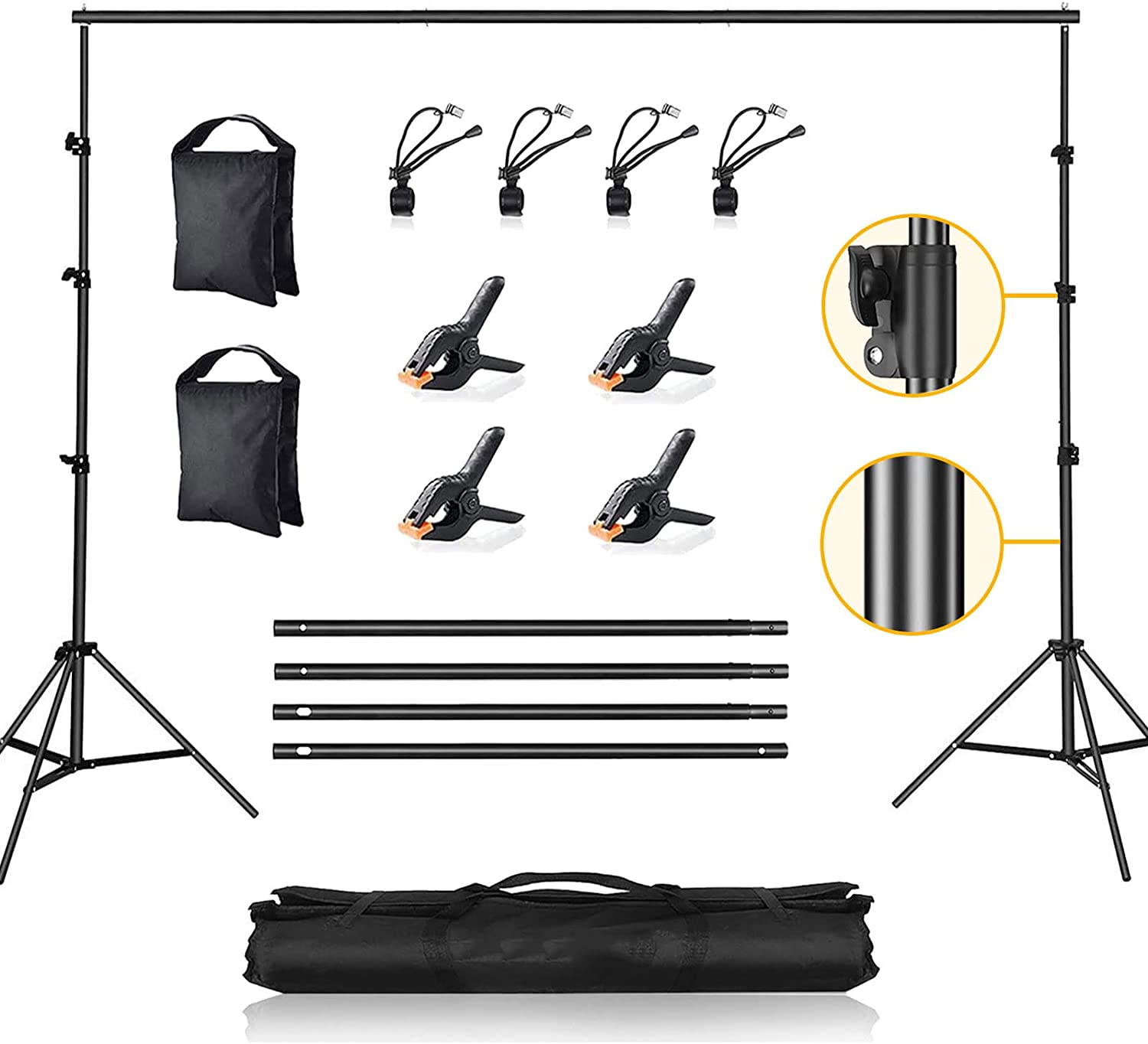• 【ADDED QUALITY ACCESSORIES】Spring clips and Backdrop elastic string clip make the background cloth have a better shooting effect; Premium quality nylon sandbags stabilize the backdrop support system.
