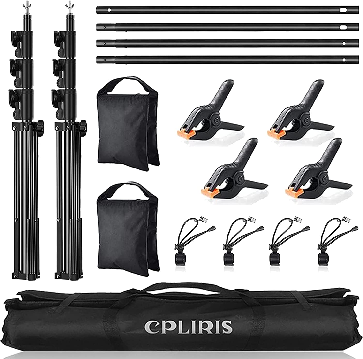 Backdrop Stand for Parties, CPLIRIS 6.5x10ft Adjustable Photo Backdrop Stand Background Support with 4 Spring Clips, 2 Sandbag, 4 Backdrop Holder Clip for Parties, Baby Shower, Birthday