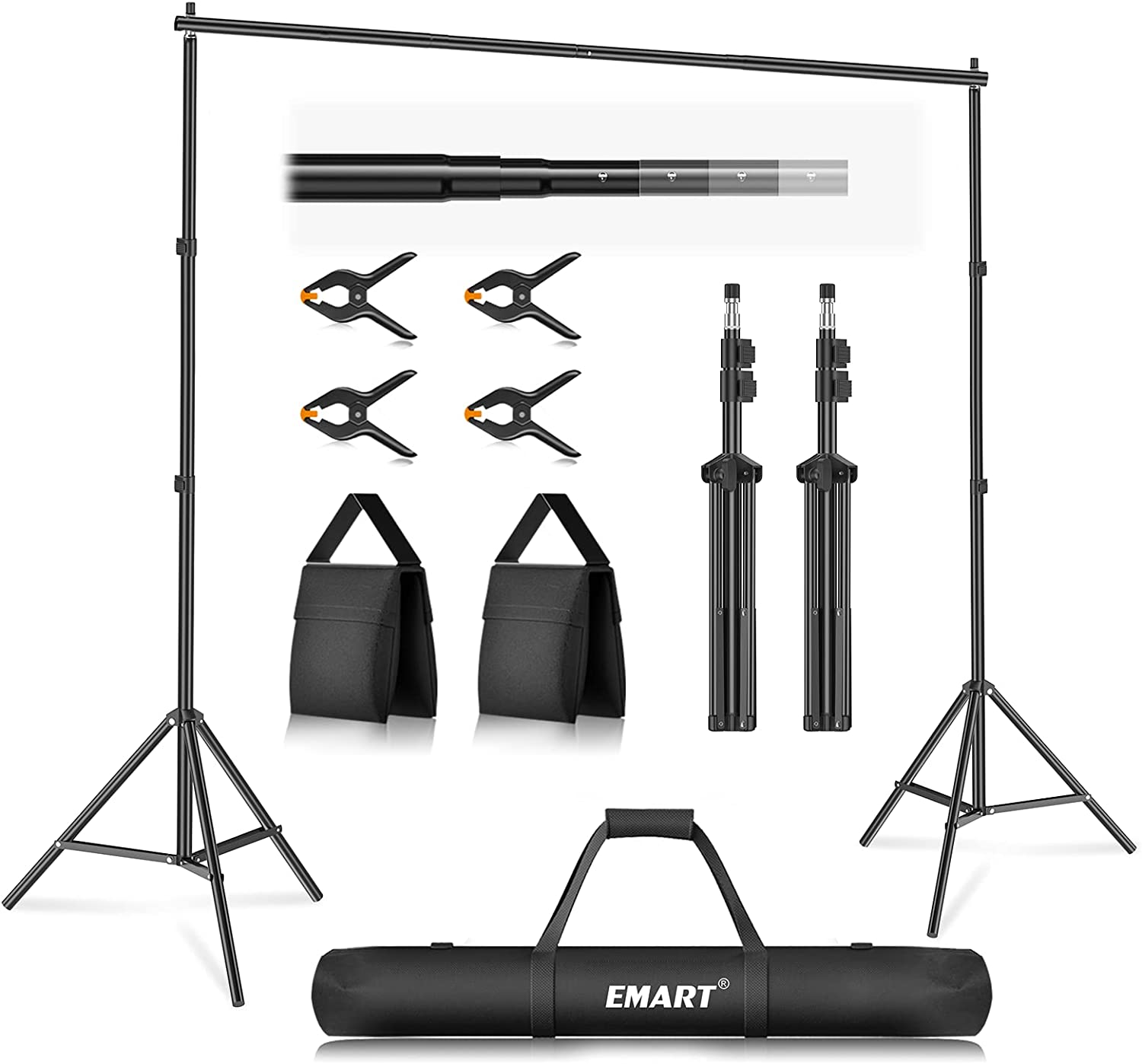 EMART Photo Video Studio 7x10Ft (H x W) Adjustable Background Stand Backdrop Support System Kit with Carry Bag