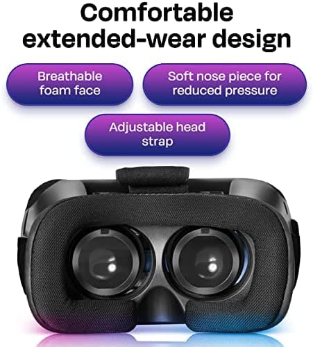 • Comfortable, extended wear design – VR headset comes with a fully adjustable head strap, eyesight protection system, and a soft nose piece to reduce pressure and ensure a comfortable experience