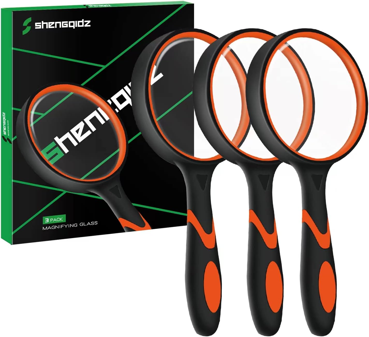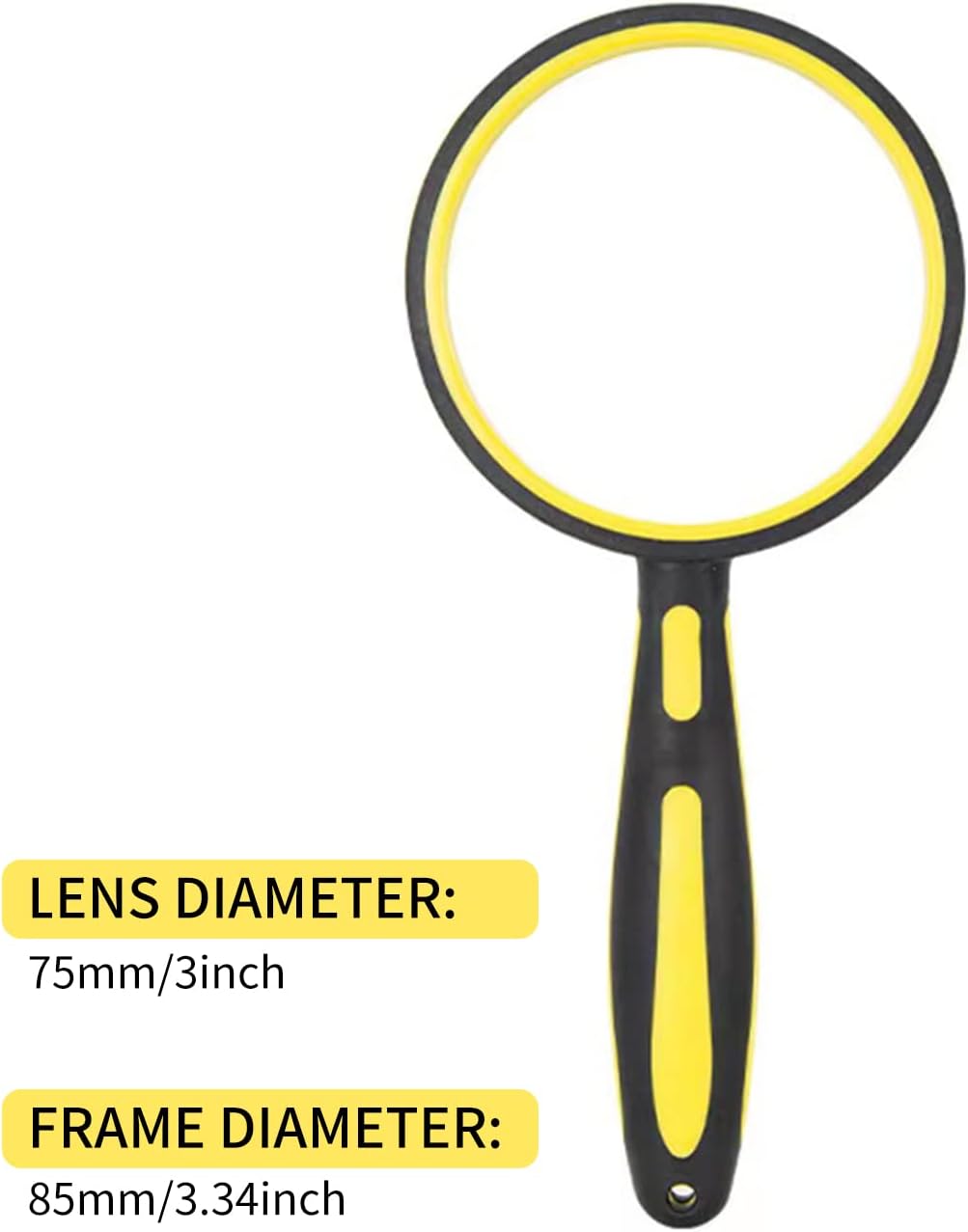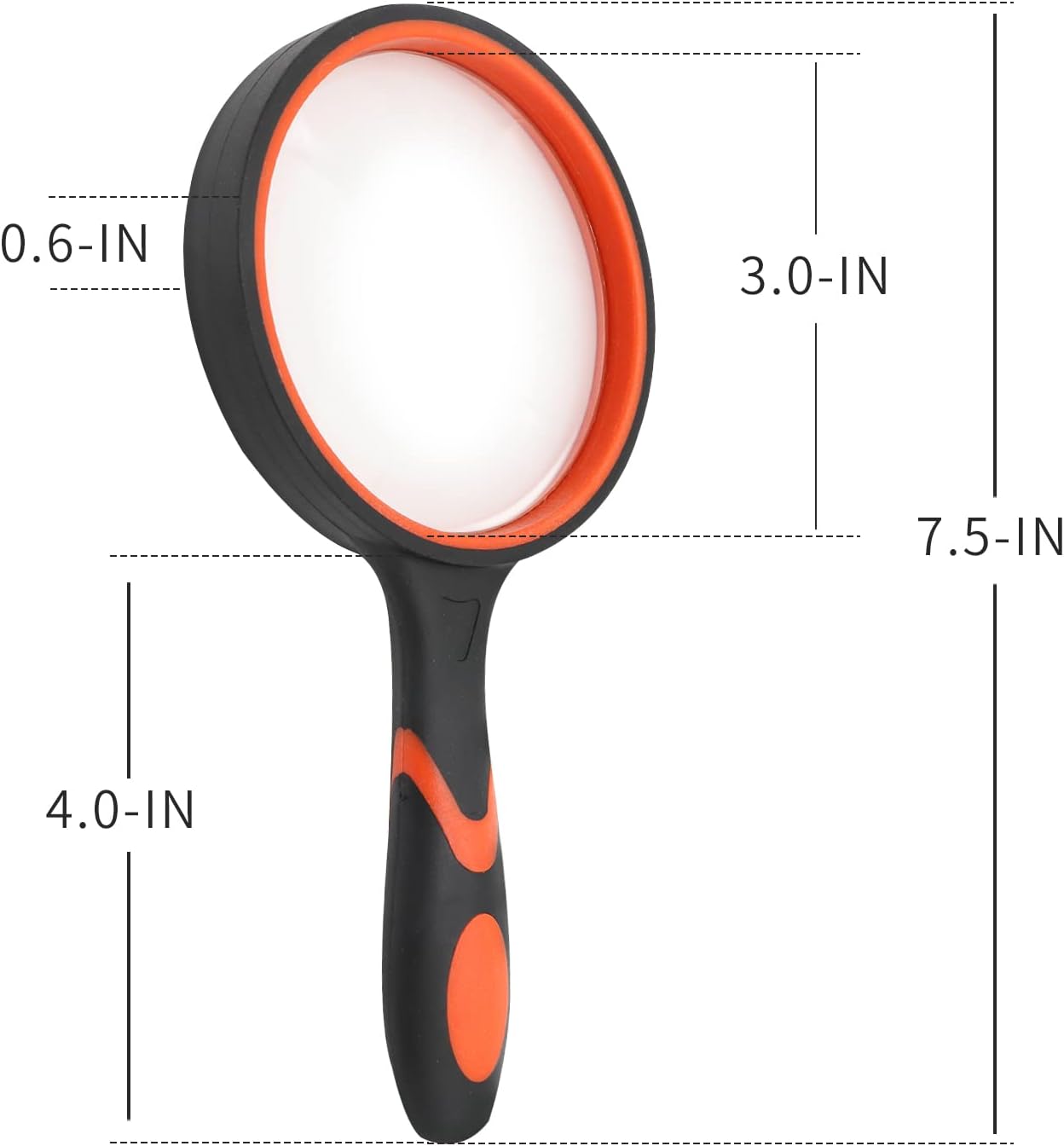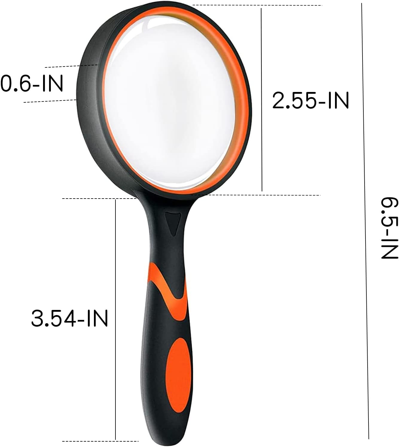 • 【Comfortable Non-Slip Handle Design】Rubberized handle and frame make this magnifying glass lightweight, non slip soft, substantial and easy to grip. Don't worry about scratching and cracking because of accidental dropping.