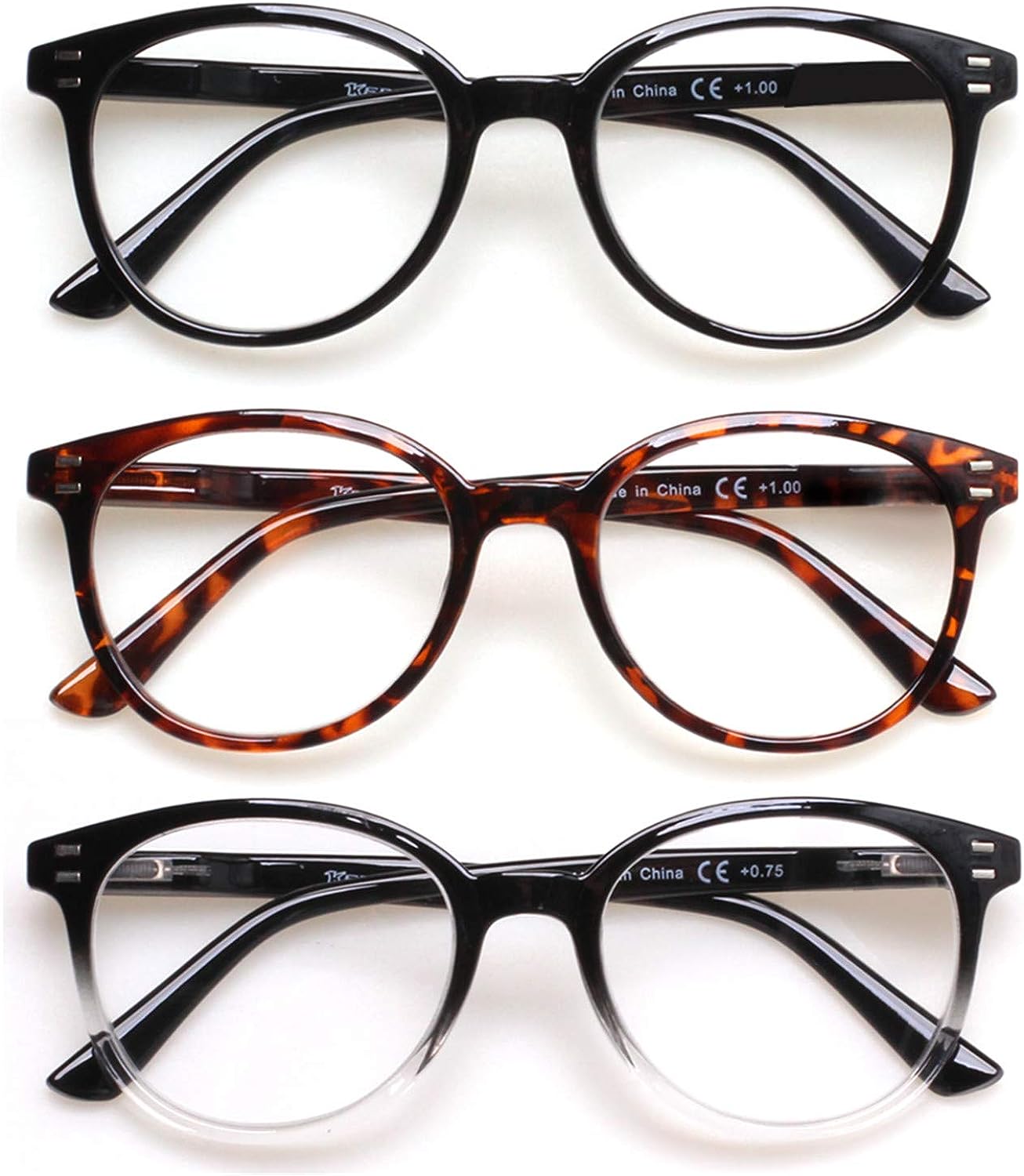 3 Pack Reading Glasses Spring Hinge Stylish Readers Black/Tortoise for Men and Women
