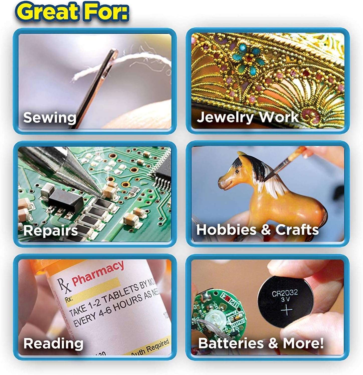 • LED TECHNOLOGY: The ultra-bright LED lights help see the densest details even in the most obscure lighting and provide hands-free illumination. Our LED eyewear comes with a USB cord and is rechargeable.