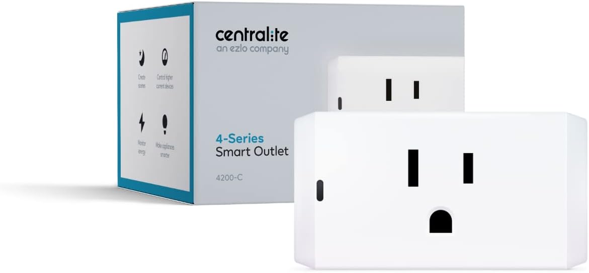 Centralite by Ezlo Zigbee Smart Outlet for Home Automation - 4-Series Smart Outlet Compatible with Ezlo, SmartThings, Wink, Hubitat, Vera Plus, Echo Plus, Echo Show, and other Zigbee devices