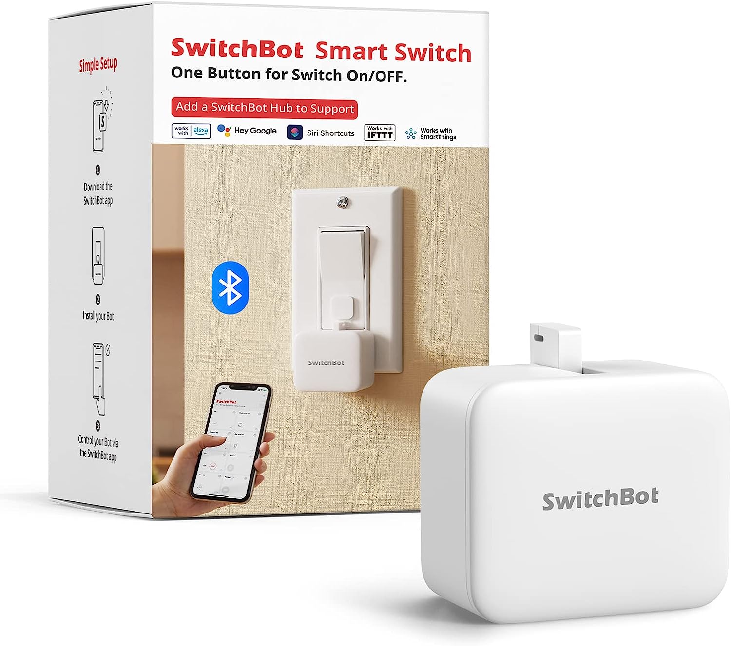 SwitchBot Smart Switch Button Pusher - Fingerbot for Automatic Light Switch, Timer and APP Bluetooth Remote Control, Works with Alexa, Google Home, IFTTT When Paired with SwitchBot Hub (Black)