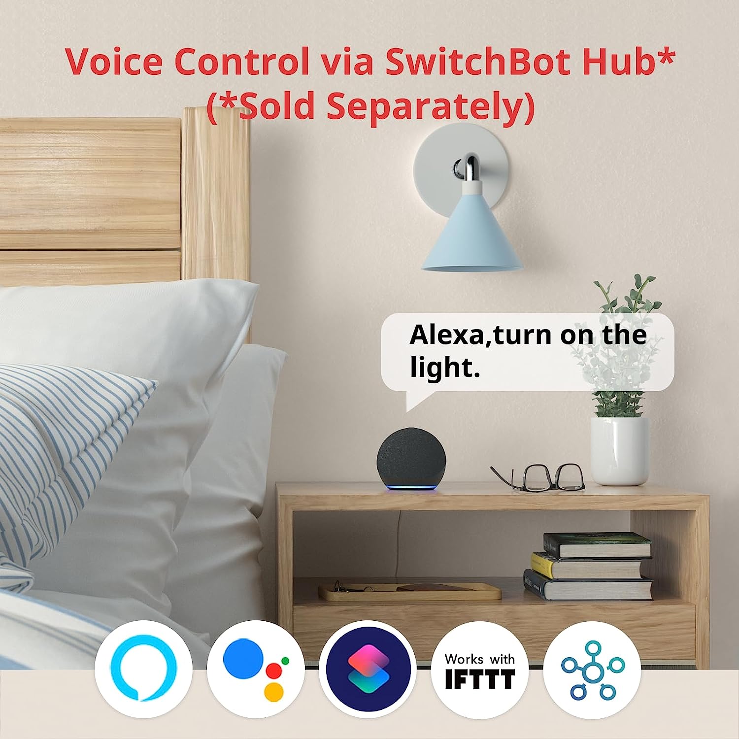 • Even better with SwitchBot Hub - With SwitchBot Hub (only support 2.4GHz Wi-Fi), you can control your SwitchBot remotely from anywhere, enable voice control and unlimited timers. Works well with Amazon Alexa, Google Assistant, Siri and IFTTT.